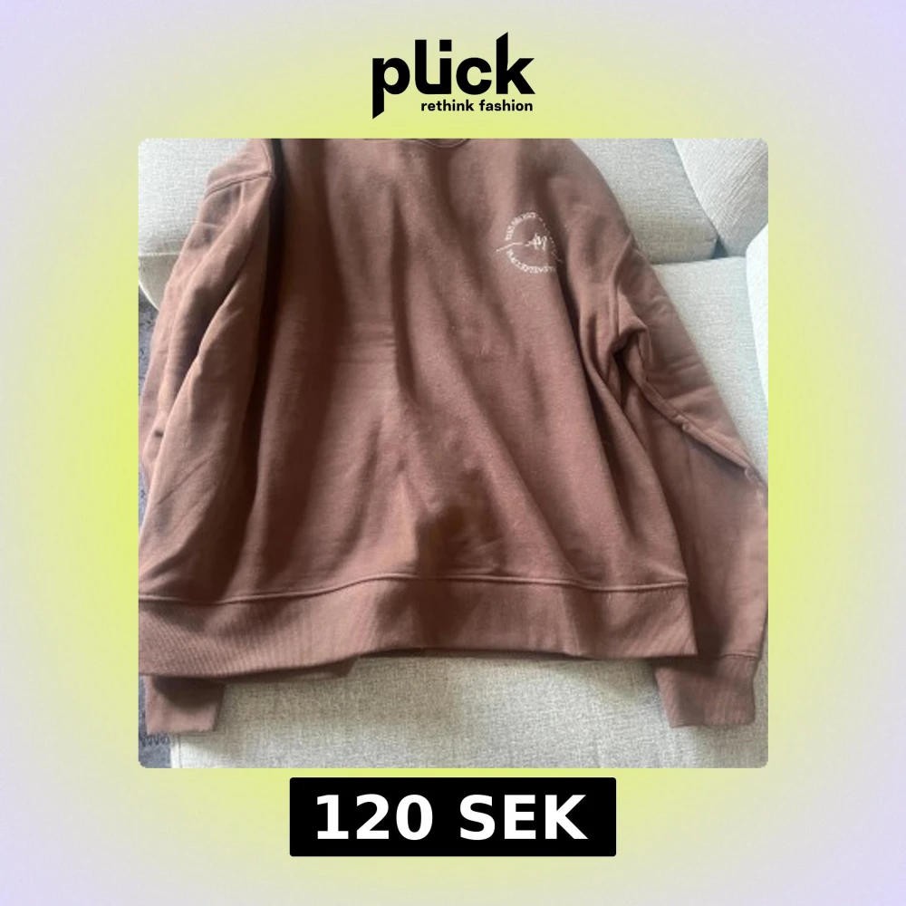 Säljer en brun sweatshirt med liten vit logga på bröstet. Tröjan har rund halsringning, långa ärmar och ribbade muddar vid ärmslut och nederkant. Perfekt för en avslappnad stil.Mjuk skön