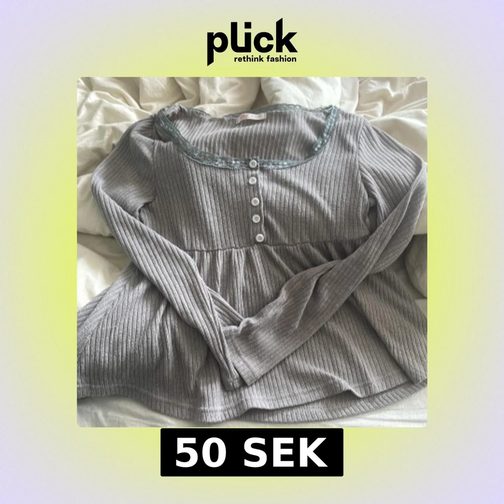 Supersöt grå ribbad topp från Romwe med lång ärm, knappar framtill och spetskant runt halsen. Modellen är lite utsvängd nertill och har en feminin vibe. Perfekt att styla med jeans eller kjol för en chill look. Har ett litet hål se bilden