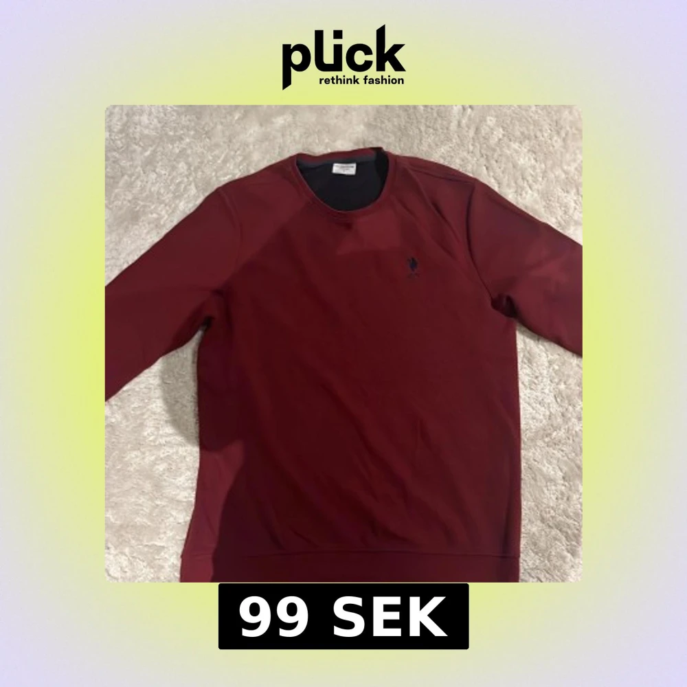 Snygg vinröd sweatshirt från U.S. Polo Assn. i storlek L. Tröjan har rund hals, långärmade ärmar och ett diskret broderat logomärke på bröstet. Materialet känns mjukt och skönt, perfekt för chill dagar. Passar dig som gillar enkel och stilren design.