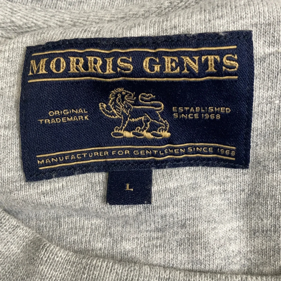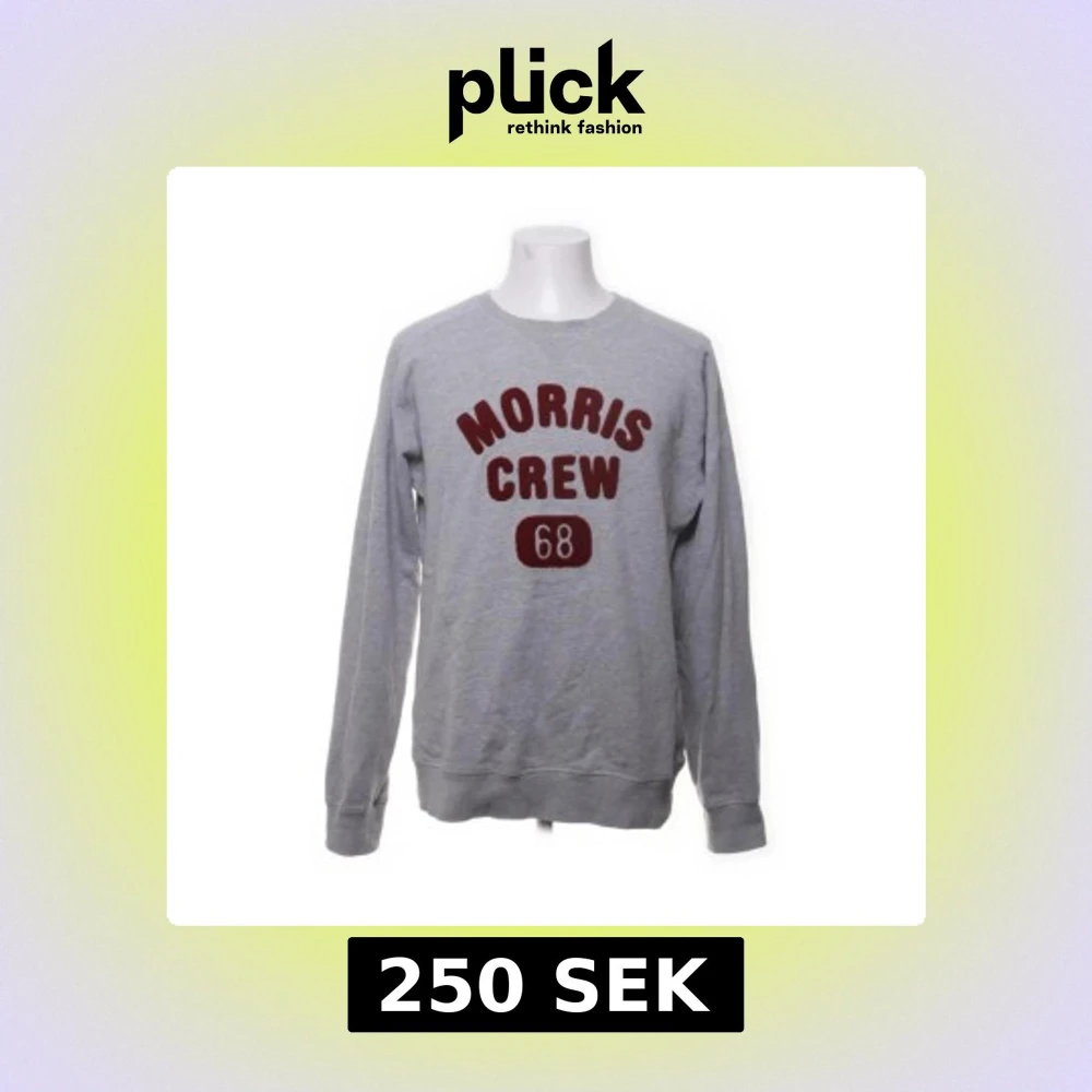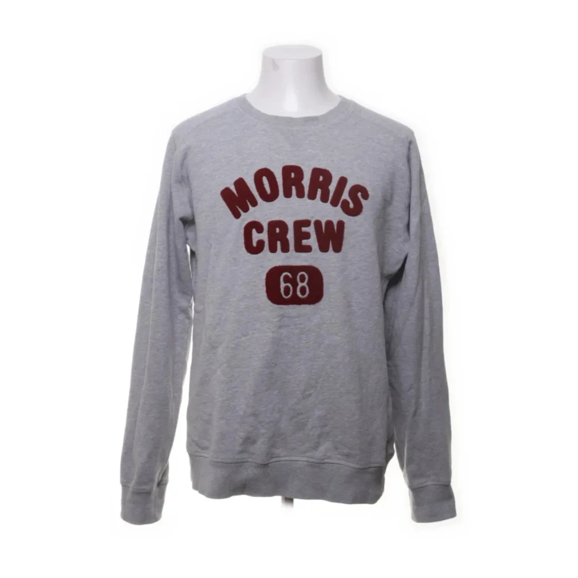 Grå crewneck-tröja från Morris Gents med vinröd text 'Morris Crew 68' framtill. Klassisk passform med rund hals och långa ärmar. Perfekt för en chill och stilren look. Tillverkad i mjuk bomull för extra komfort. L sitter som M