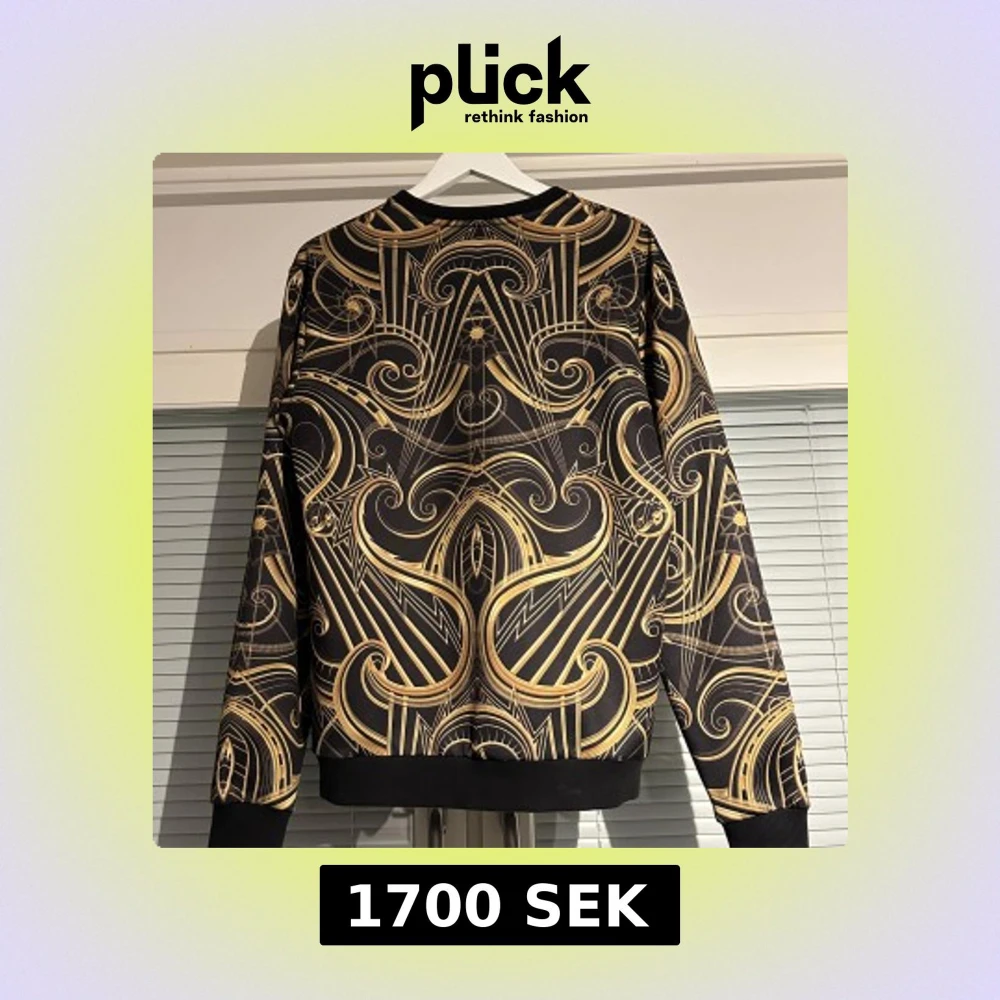 Snygg svart tröja från Versace Jeans, med fett guldmönster, Pris kan diskuteras vid snabb affär. Hybrid mellan M/L Passar både perfekt, går inte att köpa denna vara längre i butik då det är en limited edition vara.