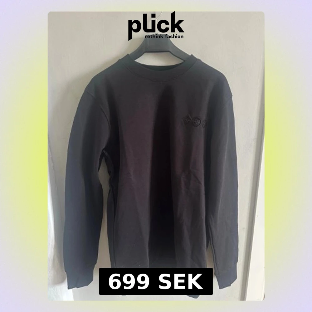 Svart sweatshirt från L V med broderad L V logga i stor stil på ryggen och diskret broderad detalj på bröstet. Tröjan har rund hals, långa ärmar och ribbade muddar. Materialet är mjuk bomull som känns skönt mot huden. Perfekt för dig som gillar exklusiva streetwear-vibbar.