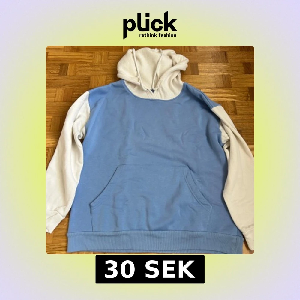Snygg hoodie i ljusblått med vita ärmar och huva. Tröjan har en stor känguruficka framtill och dragsko i huvan. Perfekt för chill dagar eller när du vill ha en avslappnad stil. Mjuk och skön känsla tack vare bomullsmaterialet.