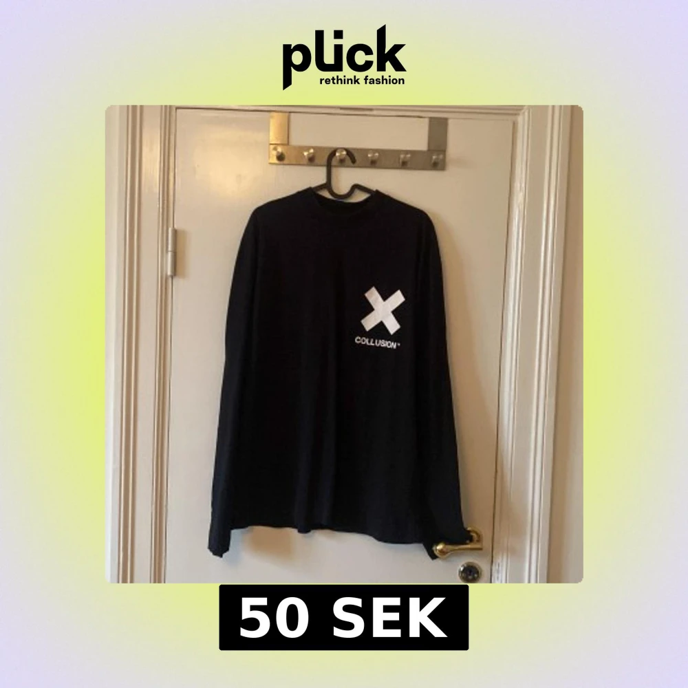 Svart långärmad tröja från Collusion med stor vit X-logga och text på bröstet samt tryck längs ena ärmen. Tröjan har en klassisk passform och är gjord i mjuk bomull, perfekt för en clean streetstyle-look.