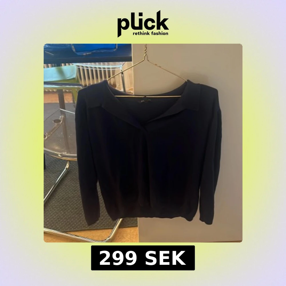 Säljer en stilren svart långärmad tröja från Alice Bizous. Tröjan har en klassisk design med en enkel krage och är perfekt för en elegant look. Passar bra till både jeans och kjol. Den formar sig efter ens kropp