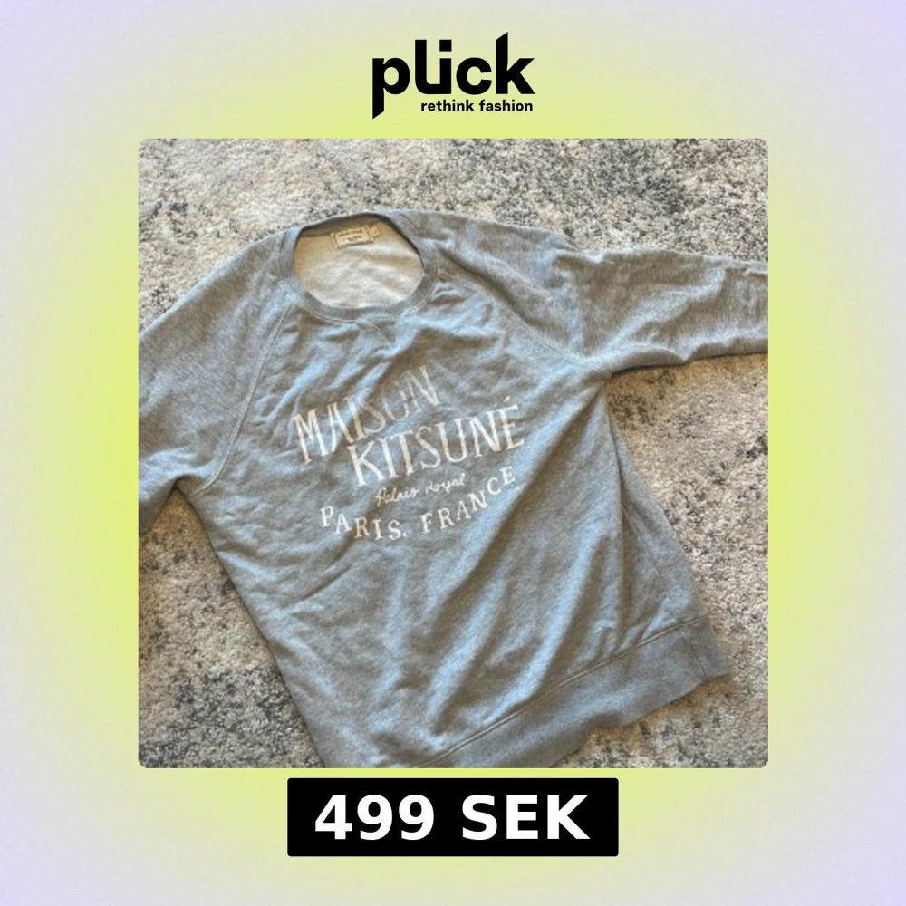 Säljer en grå sweatshirt från Maison kitsune. Den e i storlek L men sitter som M