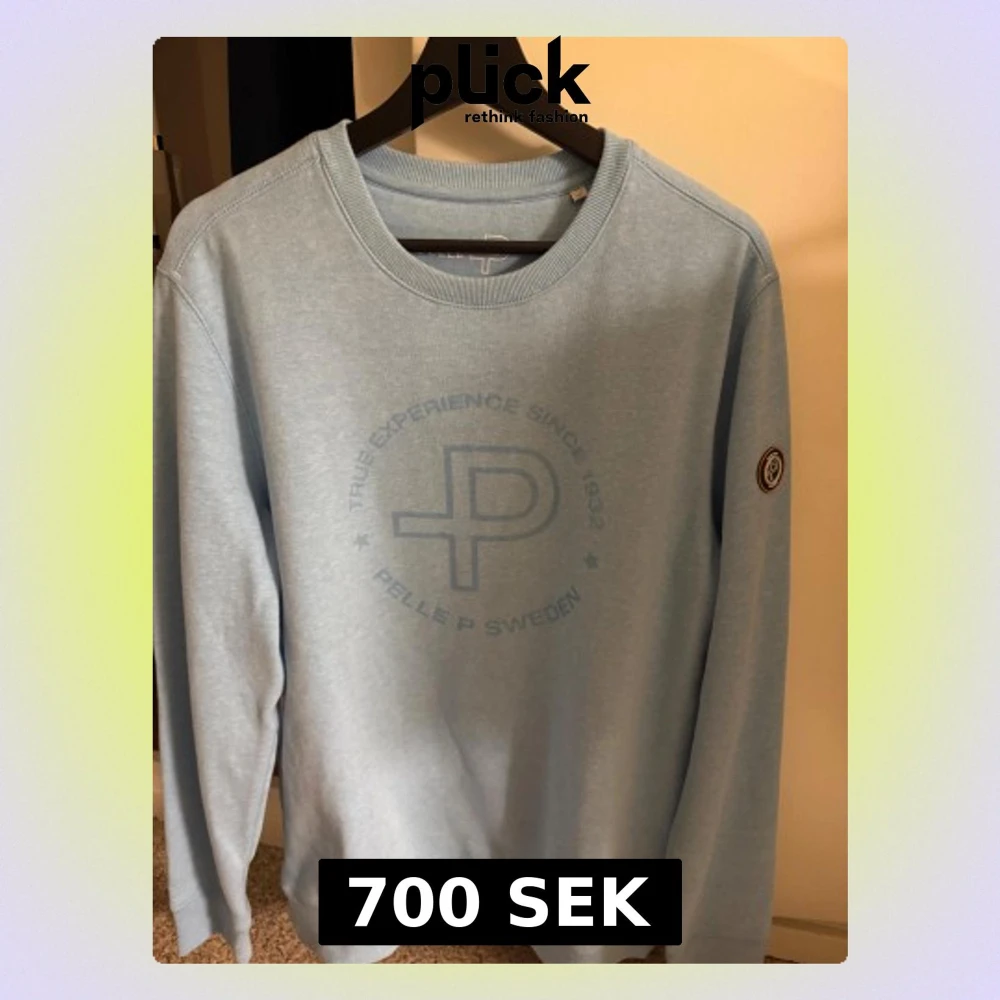 Sweatshirt i ljusblått från Pelle P med rund hals och tryckt logga på bröstet.