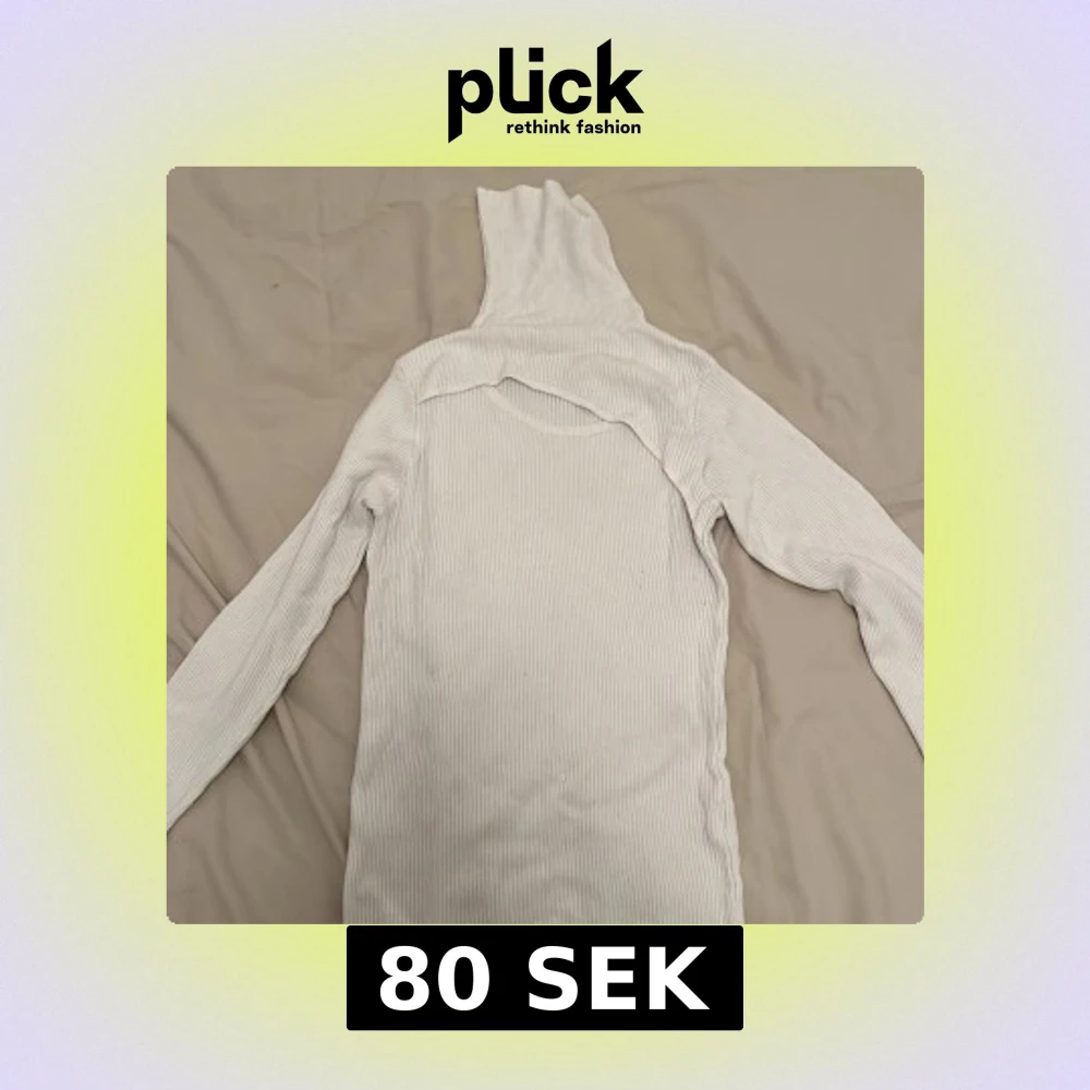 Säljer en stilren vit ribbad polotröja med lång ärm och hög krage. Perfekt för kyligare dagar och kan enkelt matchas med olika outfits. Den är i storlek L men passar även M.
