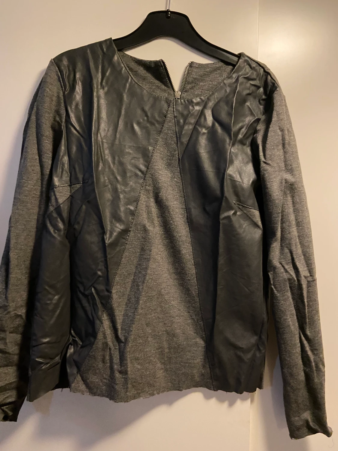 Fin grå tröja med läderdetaljer. Stl L men lite liten i stl