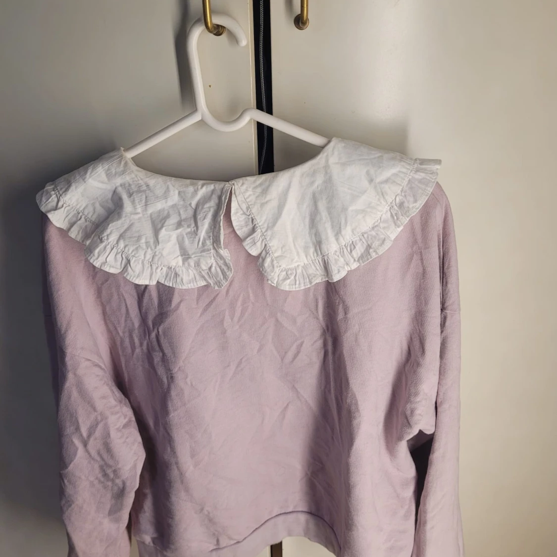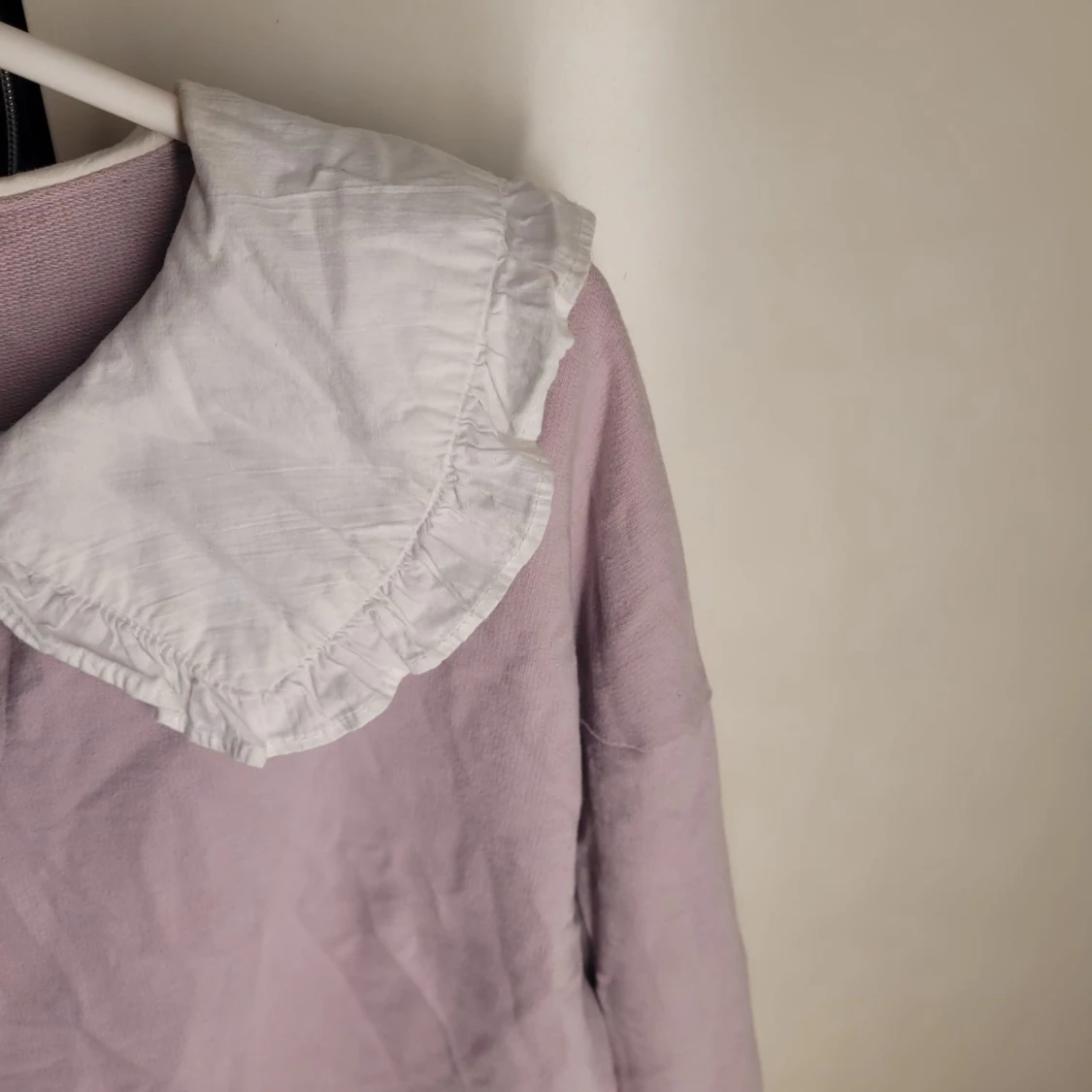 Säljer en söt ljuslila tröja från Kallinera med en stor vit krage som har volangdetaljer. Perfekt för en chic och vintage-inspirerad look. Tröjan har långa ärmar och är i bra skick. Passar perfekt till både vardag och fest!