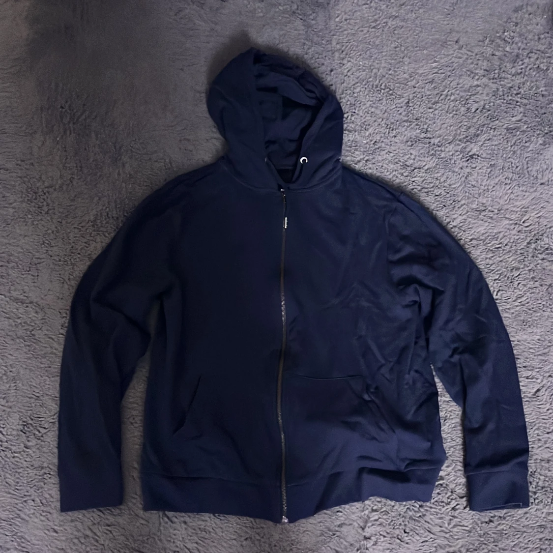 Säljer en mörkblå huvtröja från 157 med dragkedja framtill. Tröjan har en bekväm passform och är perfekt för kyligare dagar. Den har långa ärmar och en praktisk huva för extra värme. Perfekt för en avslappnad stil.