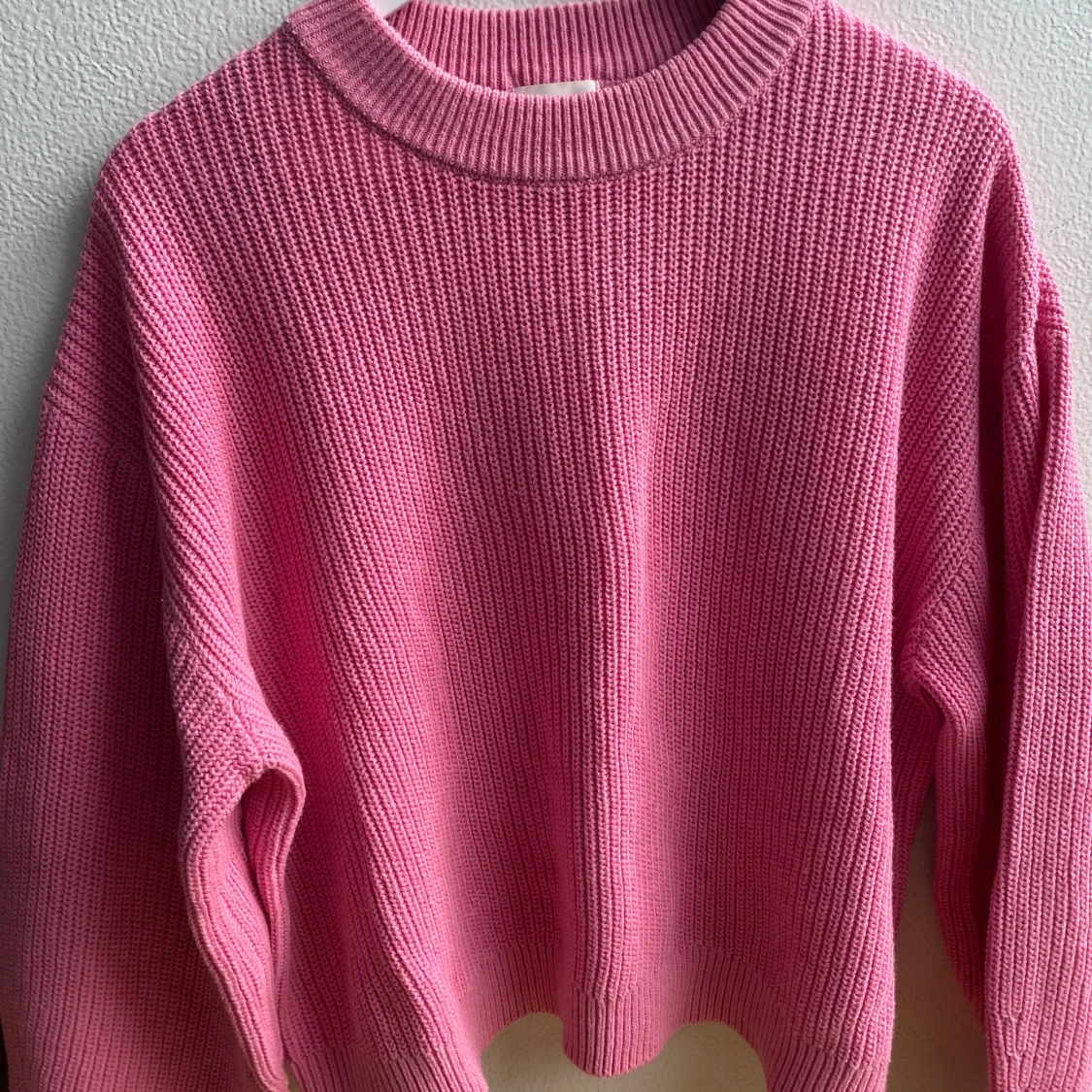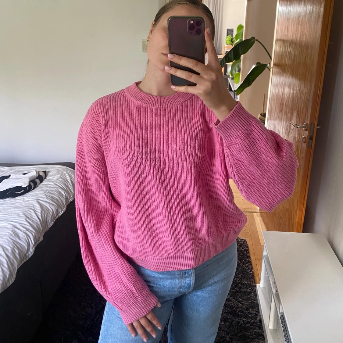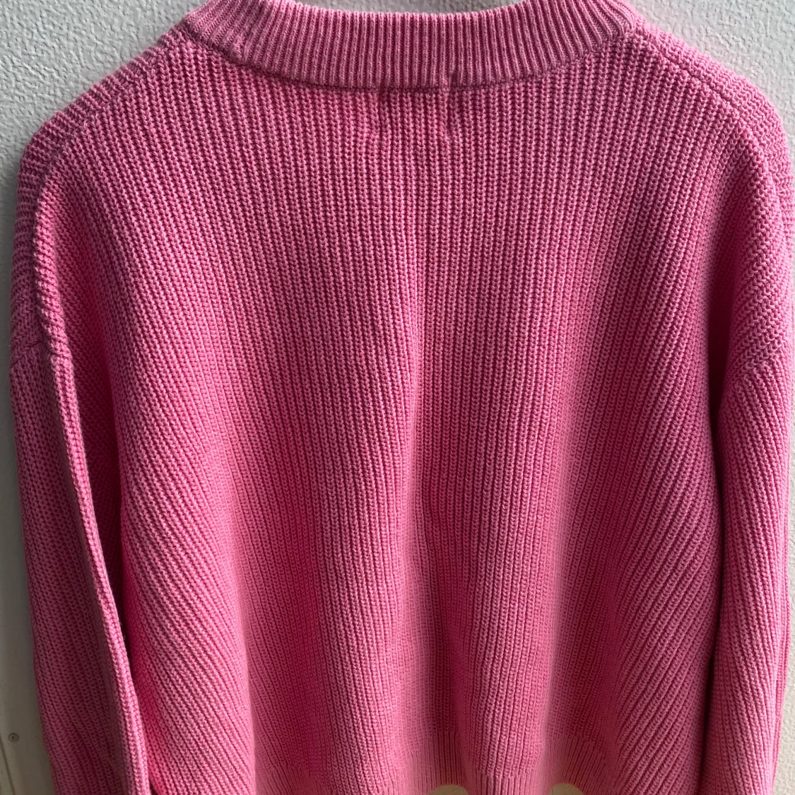 En superfin rosa stickad tröja. Tröjan är L men passar mig som vanligtvis har s/m med en loose passform och är ribbstickad för en extra mysig känsla. Perfekt att slänga på sig när det är lite kyligare ute.🩷