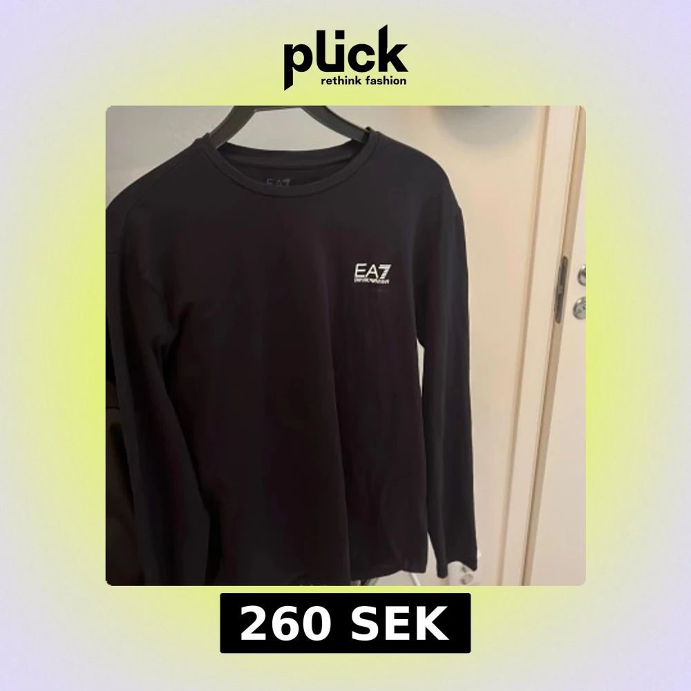 Snygg svart långärmad tröja från EA7 Emporio Armani med vit logga på bröstet och diskret detalj på ryggen. Perfekt för en stilren och sportig look. Rund halsringning och mjukt material.