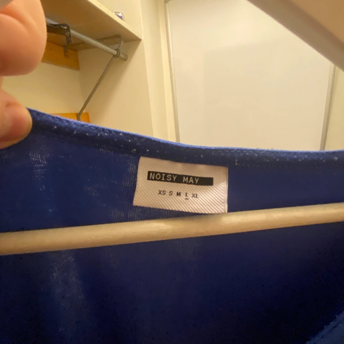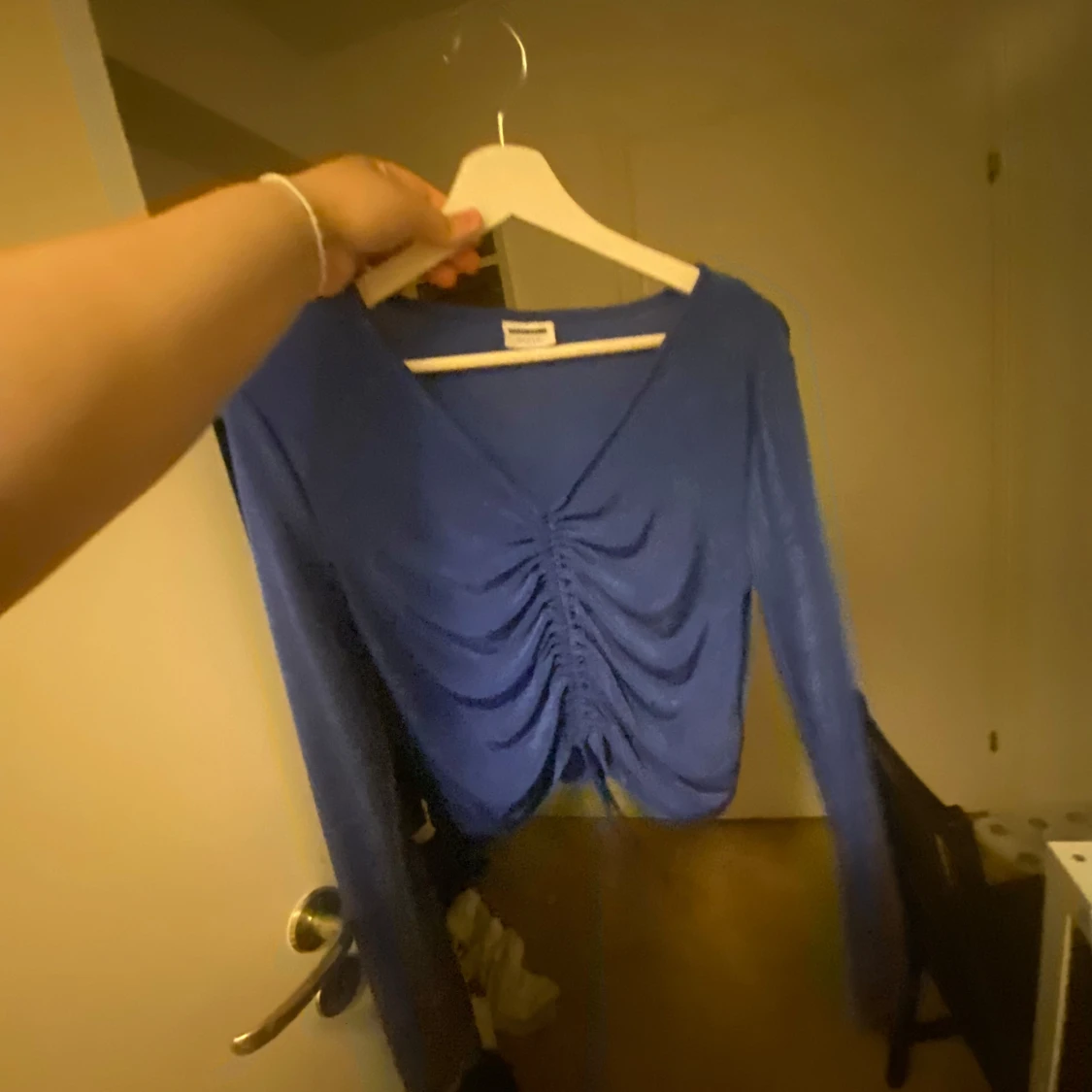 Säljer en snygg blå långärmad topp från Noisy May. Den har en cool snörning framtill som ger en fin rynkad effekt. Perfekt för både vardag och fest! 💙
