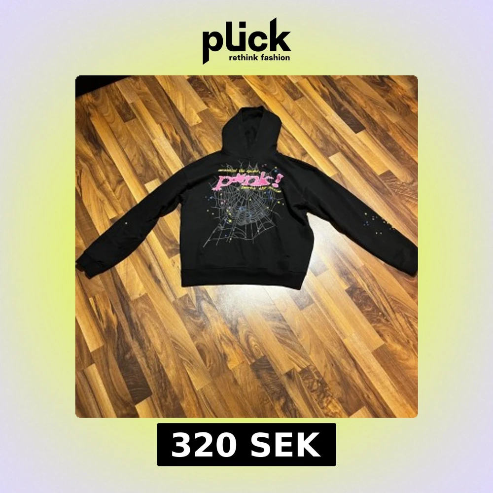 Säljer min spider hoodie med en design. Den har en stjärndetalj på baksidan och färgstänk på ärmarna. Perfekt för en avslappnad stil.