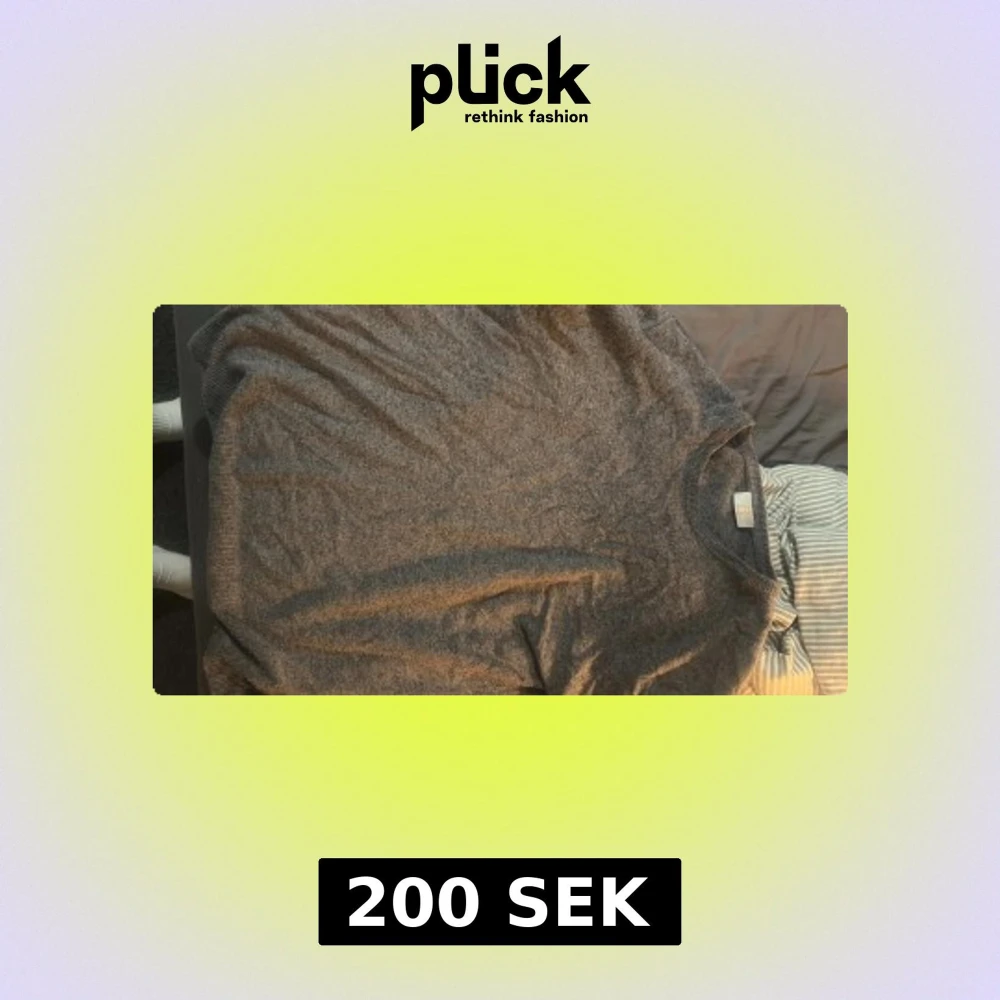 En enkel och mjuk grå stickad tröja med rund hals och långa ärmar. Den har ett litet hål som man ser på bilden och den är syd på armen. Köpte den för 900kr ny.