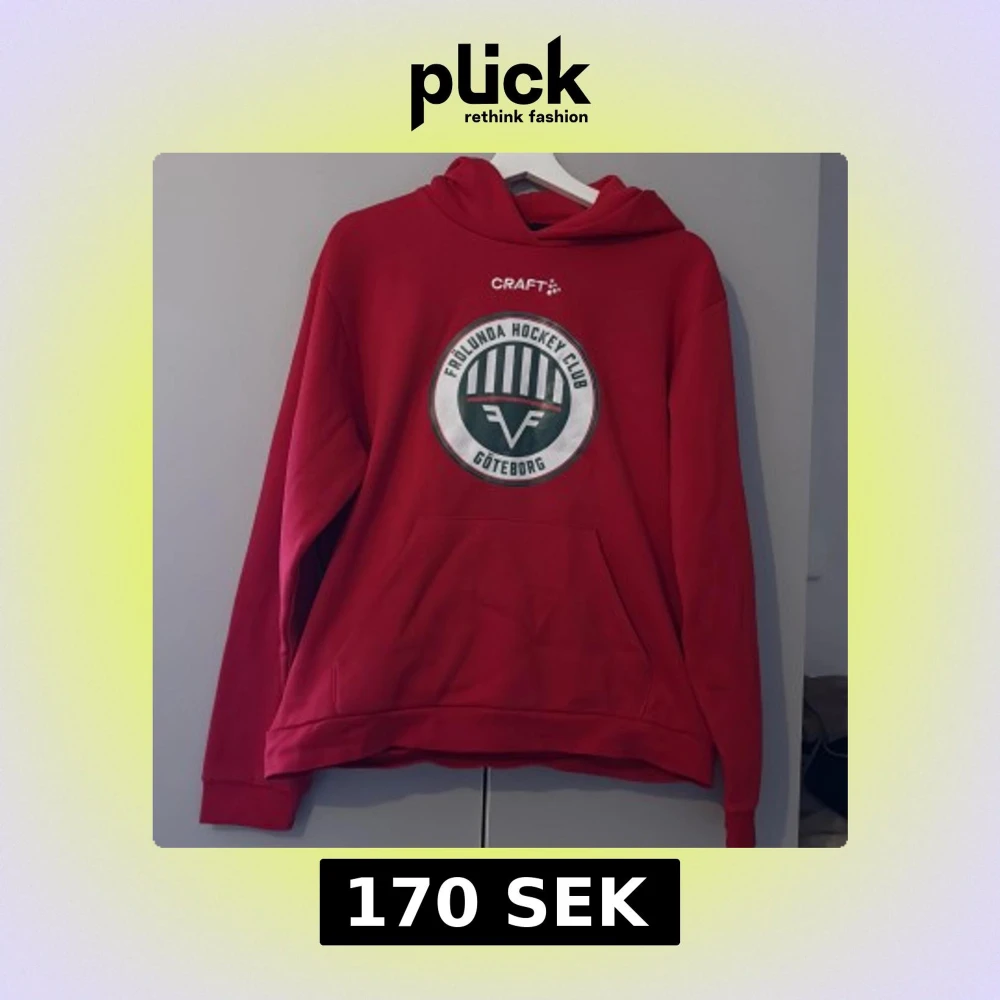 Säljer en röd hoodie från Craft med Frölunda Hockey Club Göteborgs logga tryckt på bröstet. Tröjan har huva, magficka och långa ärmar. Perfekt för dig som vill visa ditt stöd för Frölunda HC och gillar sportig stil. I nyskick endast tvättad en gång