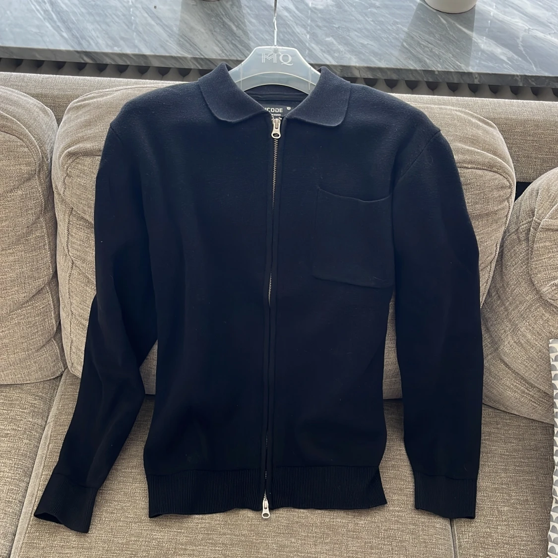 Svart kofta från Indicode i storlek Large. Klassisk design med krage, hel dragkedja framtill och en bröstficka. Materialet är mjukt och känns skönt mot huden, perfekt för lager-på-lager. Passformen är normal och ärmarna är långa.