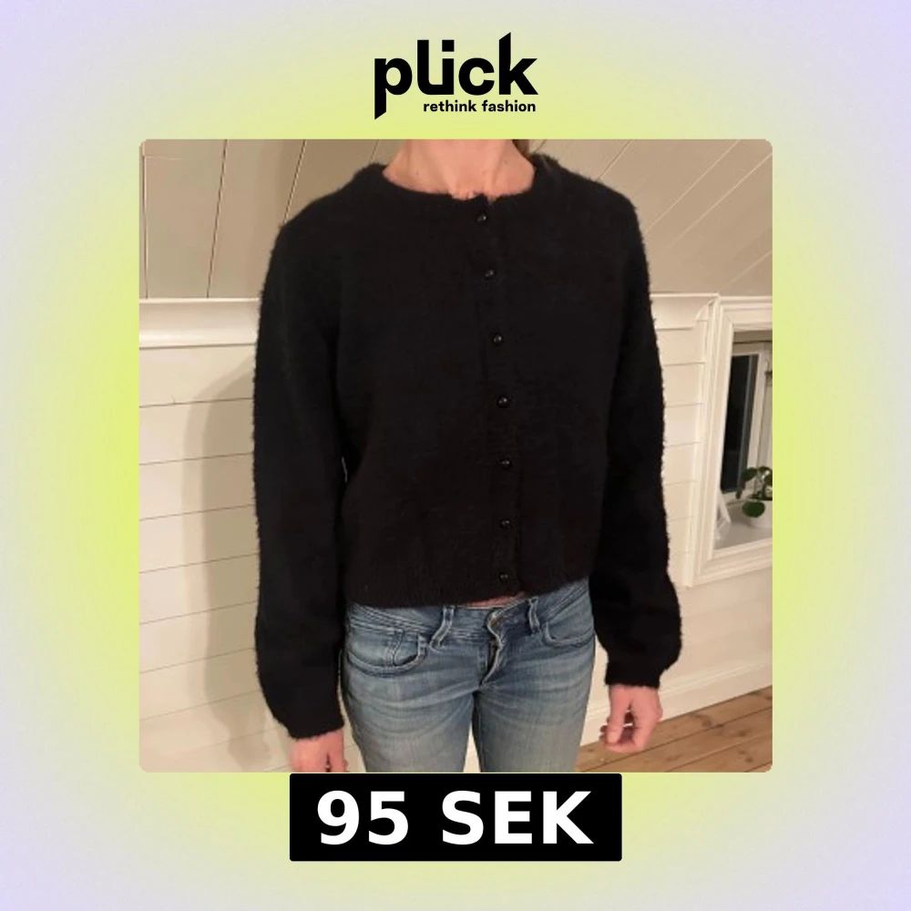 Mysig svart kofta från Pieces med knappar framtill. Perfekt för kyliga dagar och enkel att matcha med olika outfits. Koftan har långa ärmar och en klassisk design. Det står att det är stl L men skulle säga att det mer är S.🥰