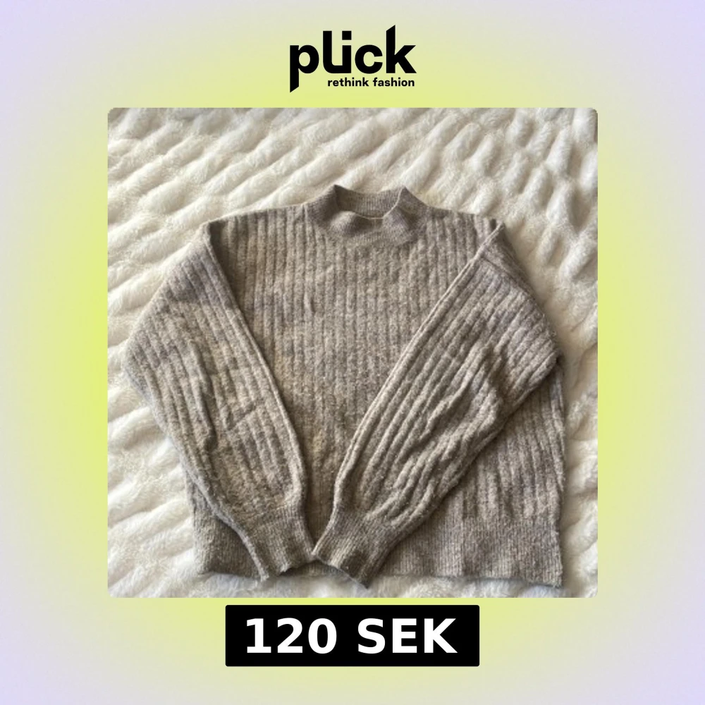 Säljer en mysig grå stickad tröja med ribbad struktur. Tröjan har en hög krage och långa ärmar, perfekt för kyliga dagar. Den är både stilren och bekväm, idealisk för lager-på-lager-stil. Står att det är en L men passar även jättebra på S utan att den ser för stor ut. Inga defekter förutom lite nopprig. Priset kan diskutera. Skriv för fler bilder