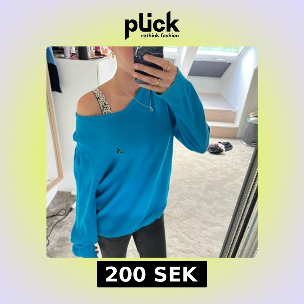Snygg blå stickad tröja från Skill med v-ringning och liten broderad fågel på bröstet. Tröjan har lång ärm och en loose passform som ger en chill vibe. Perfekt att slänga på sig över ett linne eller t-shirt för en avslappnad look.