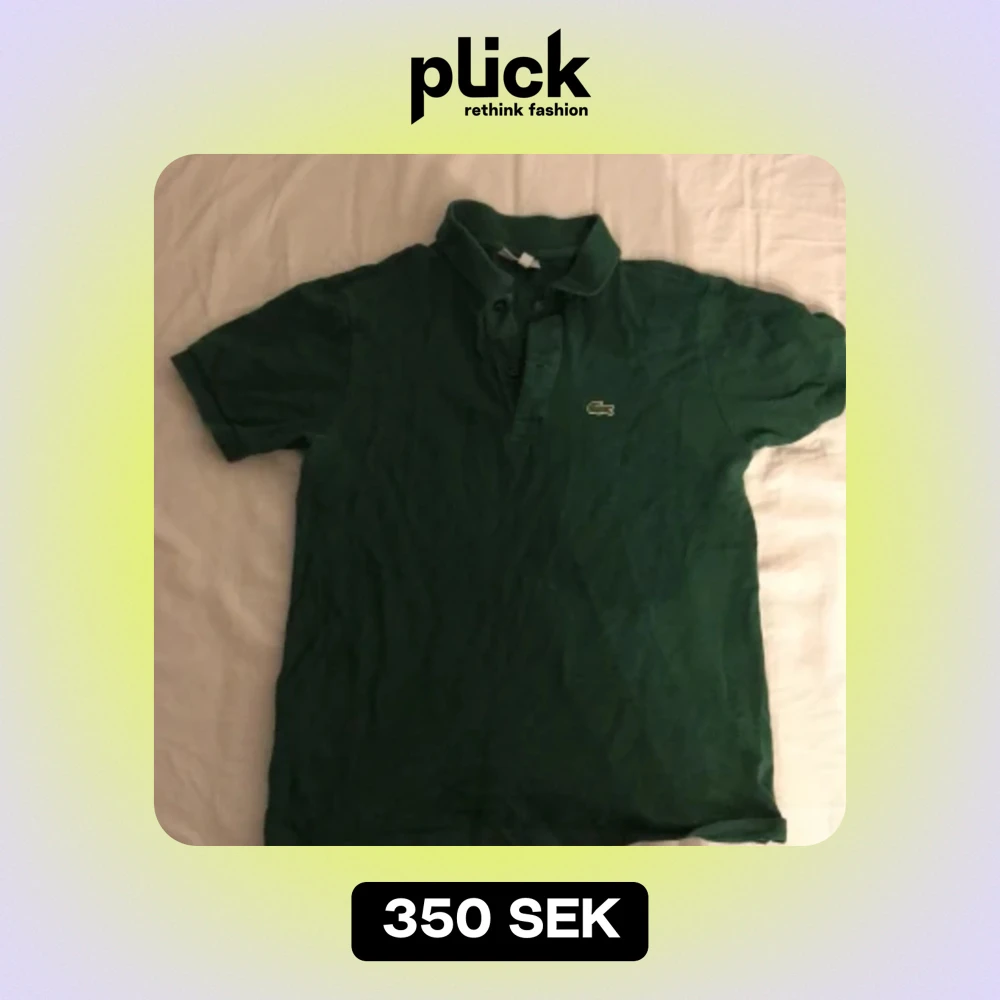Säljer en grön Lacoste piké. storlek 152 cm men kan också passa för någon som är lite smalare och är runt 160. Perfekt för en avslappnad och stilren look. Tröjan är i bra skick och har inga fläckar eller hål
