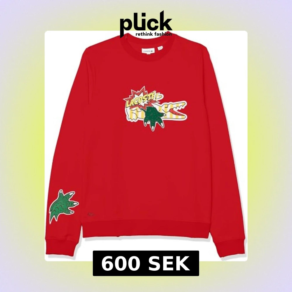 Cool röd sweatshirt från Lacoste med grafiskt krokodiltryck på bröstet och en grön krokodilklös på ärmen. Tröjan har rund hals, långa ärmar och är gjord i mjuk bomull. Perfekt för dig som gillar streetstyle och vill sticka ut med färg och print.