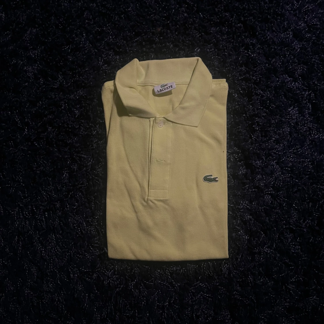 Snygg ljusgul pikétröja från Lacoste med klassisk krage och två knappar framtill. Ikoniska krokodilloggan broderad på bröstet. Perfekt för dig som vill ha en fräsch och stilren look. Tillverkad i mjuk bomull som andas.