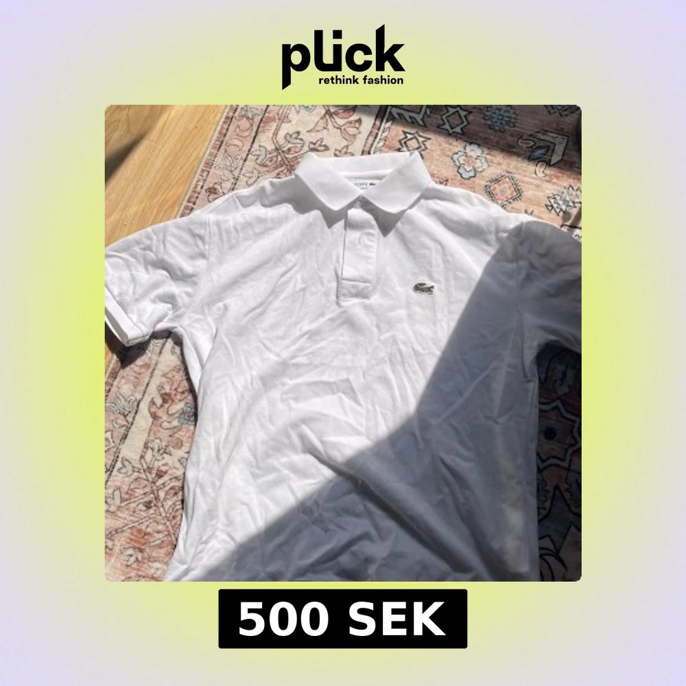 Säljer en klassisk vit pikétröja från Lacoste i slim fit-modell. Tröjan har korta ärmar, krage och knäppning framtill samt den ikoniska gröna krokodilloggan på bröstet. Perfekt för en stilren och sportig look.