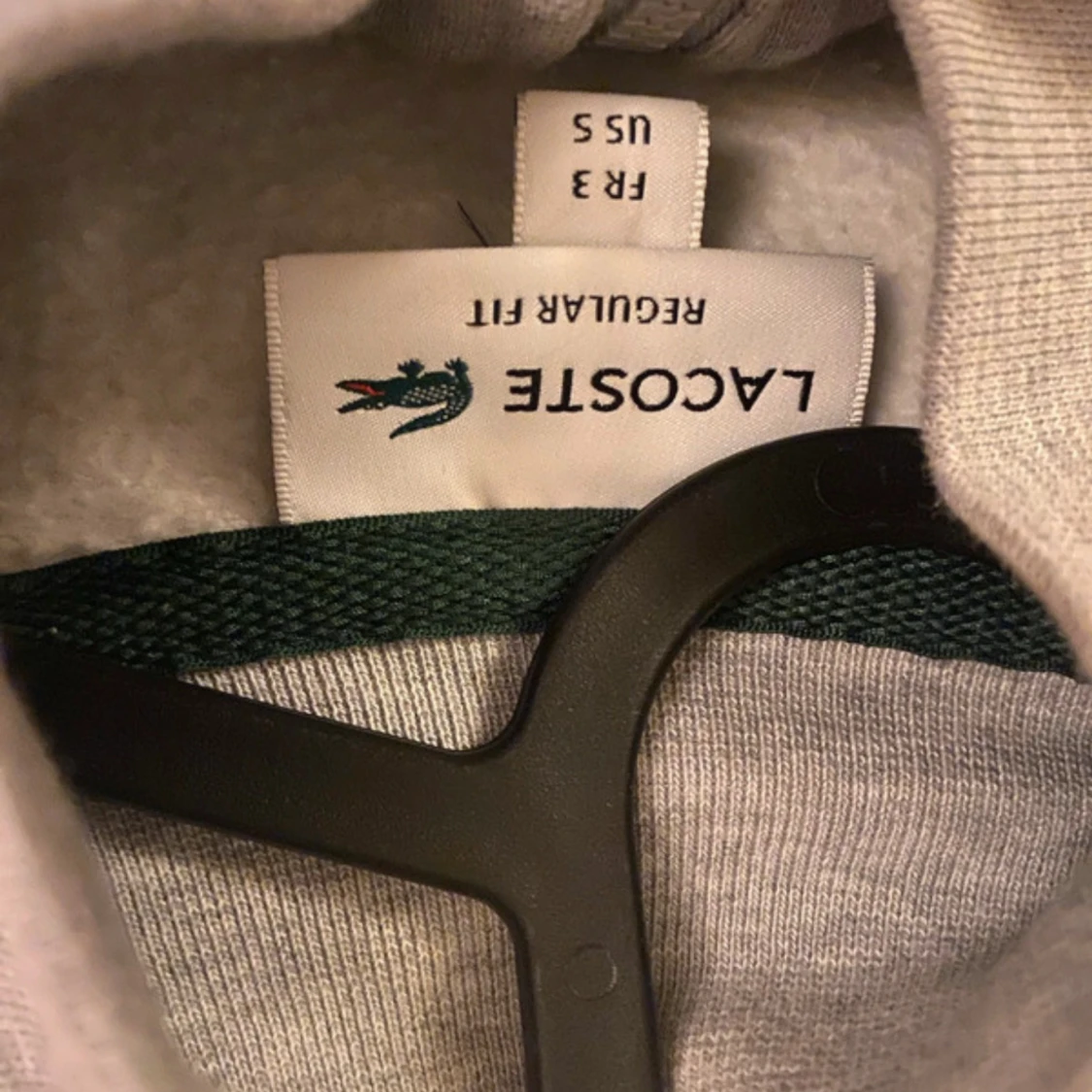 Säljer en stilren grå tröja från Lacoste med dragkedja och det klassiska krokodilmärket på bröstet. Tröjan har långa ärmar och ribbade muddar vid ärmslut och nederkant. Perfekt för en avslappnad look.
