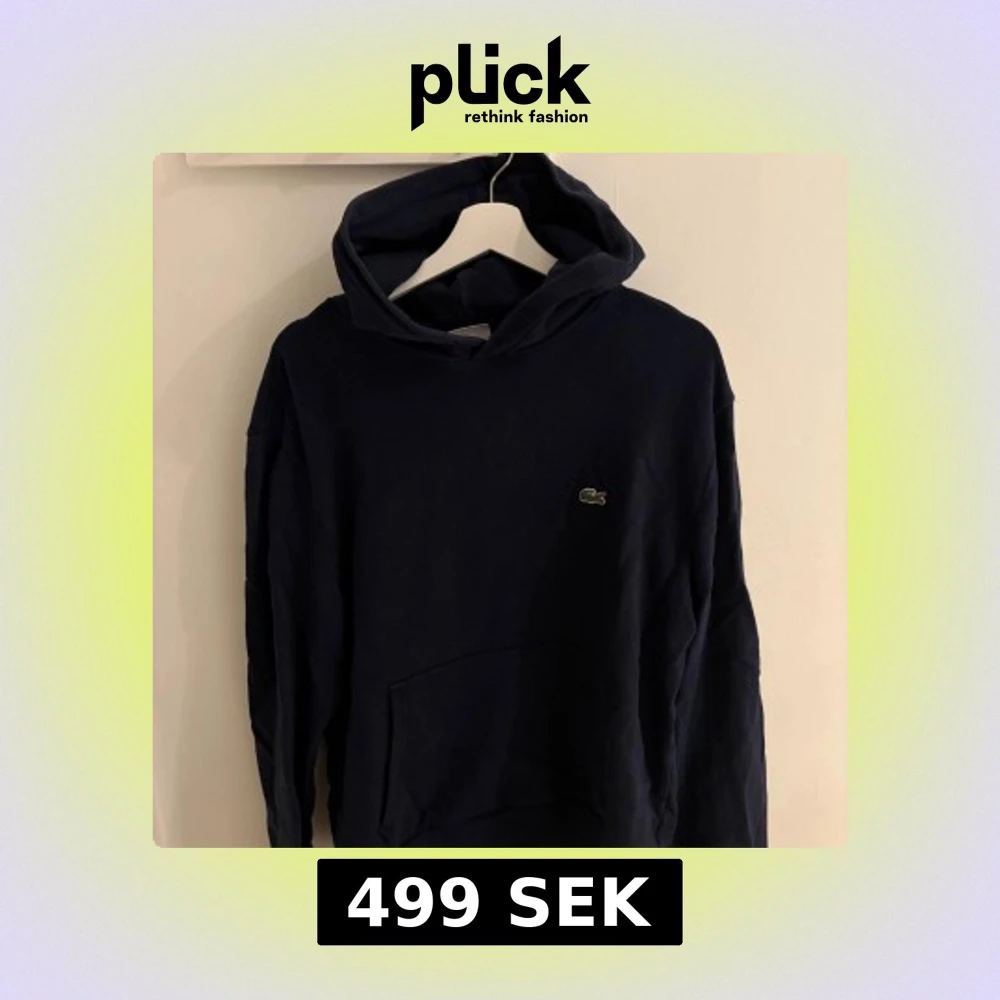 Säljer en stilren mörkblå hoodie från Lacoste med klassisk krokodillogga på bröstet. Tröjan har huva, lång ärm och en stor magficka framtill. Perfekt för dig som gillar en enkel och snygg streetstil. Storlek XL men passar L