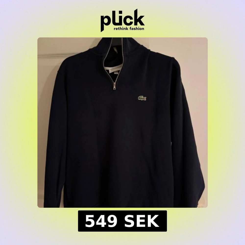 Snygg marinblå långärmad tröja från Lacoste med half zip. Perfekt för dig som gillar stilrena och sportiga plagg. Skön passform och enkel att matcha med det mesta. Pris kan diskuteras