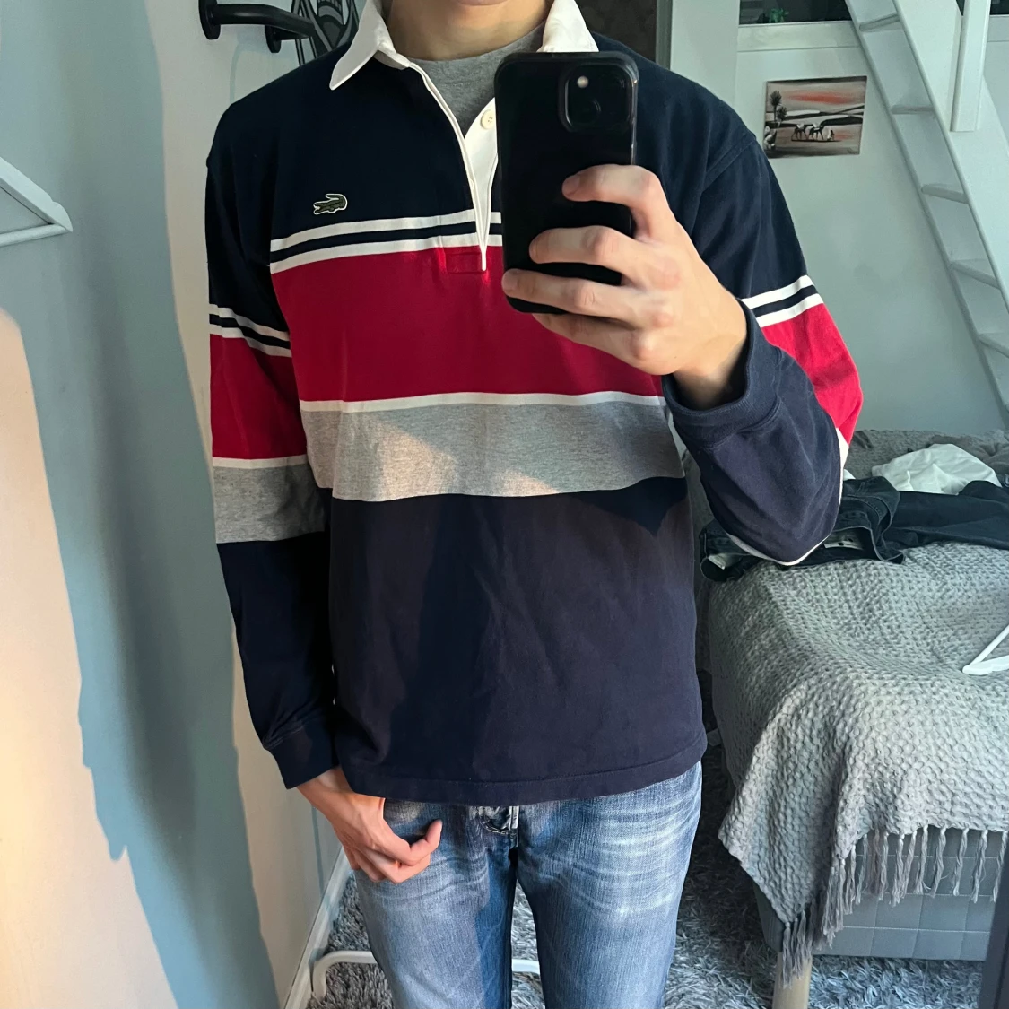 Fräsch rugbytröja från lacoste främst mörkblå. Riktigt bra passform och skick. Storlek M sitter true to size Tveka inte att skicka DM vid frågor och funderingar!