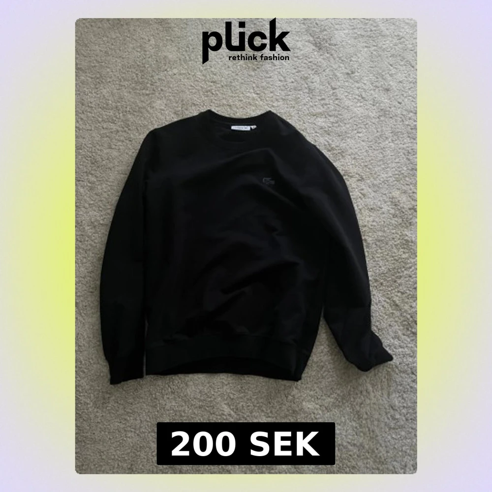 Svart sweatshirt från Lacoste i regular fit med klassisk rund hals och broderad blå krokodil på bröstet. Tröjan har långa ärmar och ribbade muddar vid hals, ärmslut och nederkant. Perfekt för en chill och stilren look. Säljer billigt för behöver pengar