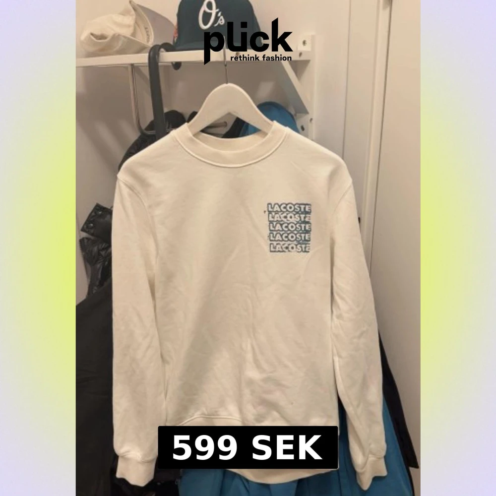 Vit sweatshirt från Lacoste med blått tryck på bröstet och stor grafisk krokodil och logga på ryggen. Klassisk rund halsringning och långa ärmar. Mjuk bomullskvalitet som är skön att bära och passar perfekt till streetwear-stilen.