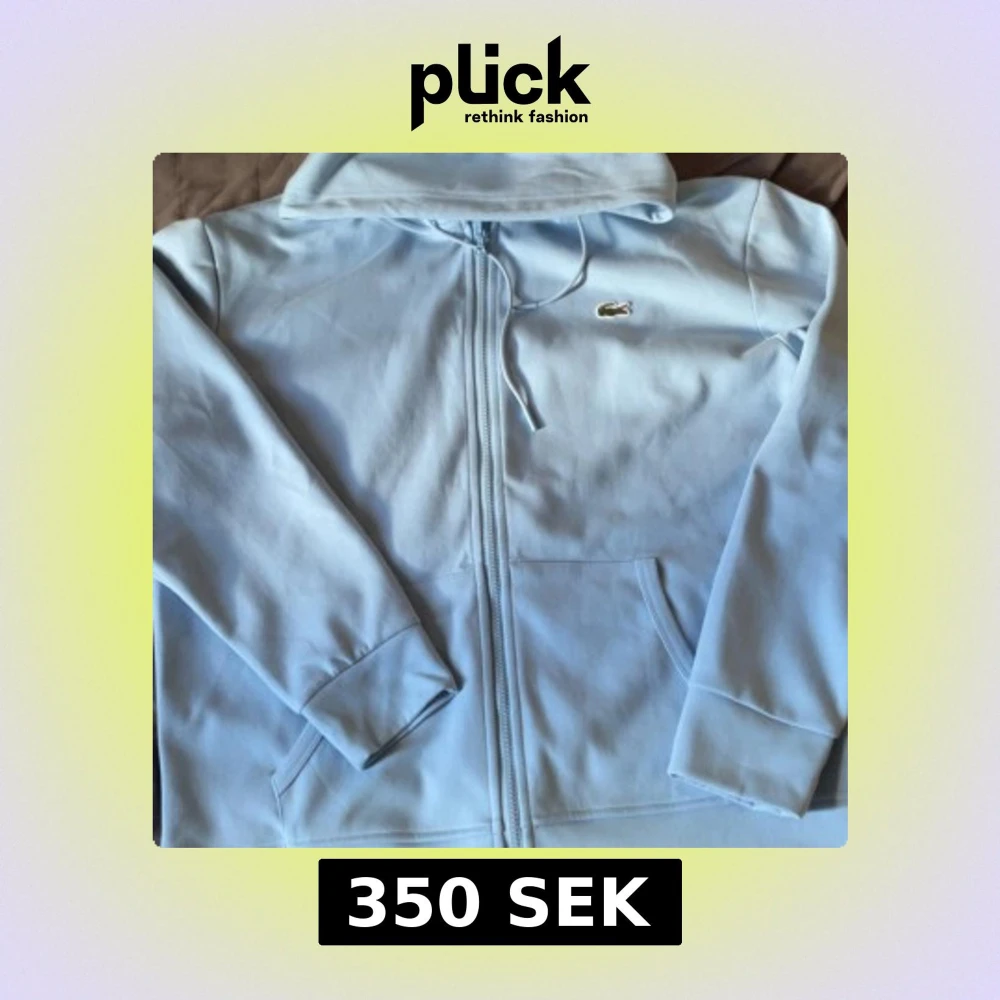 Säljer en ljusblå hoodie från Lacoste med dragkedja och huva. Klassisk krokodillogga på bröstet, fickor framtill och snörning i huvan. Skön passform och perfekt för chill dagar. Classic fit-modell.