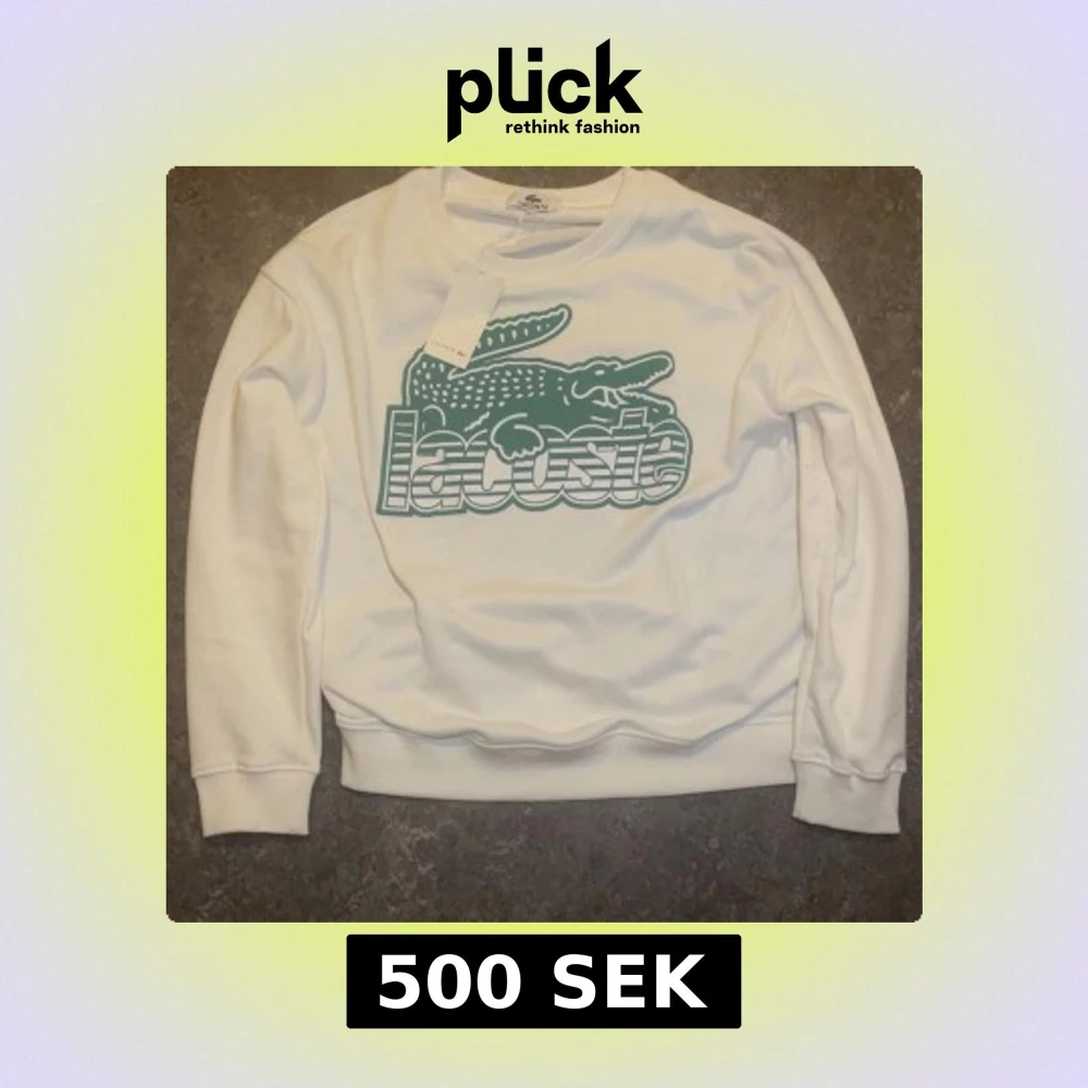 Säljer en vit sweatshirt från Lacoste med stor grön krokodil och logga framtill. Tröjan har rund hals, långa ärmar och ribbade muddar. Perfekt för dig som gillar klassisk streetstyle och vill sticka ut med en ikonisk look.