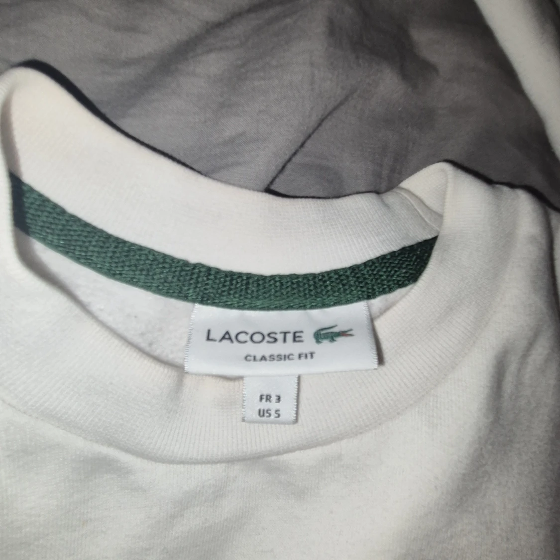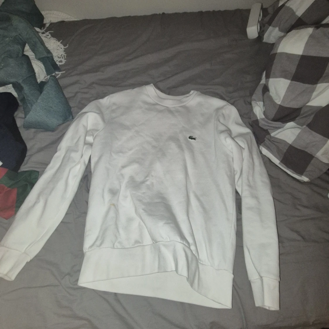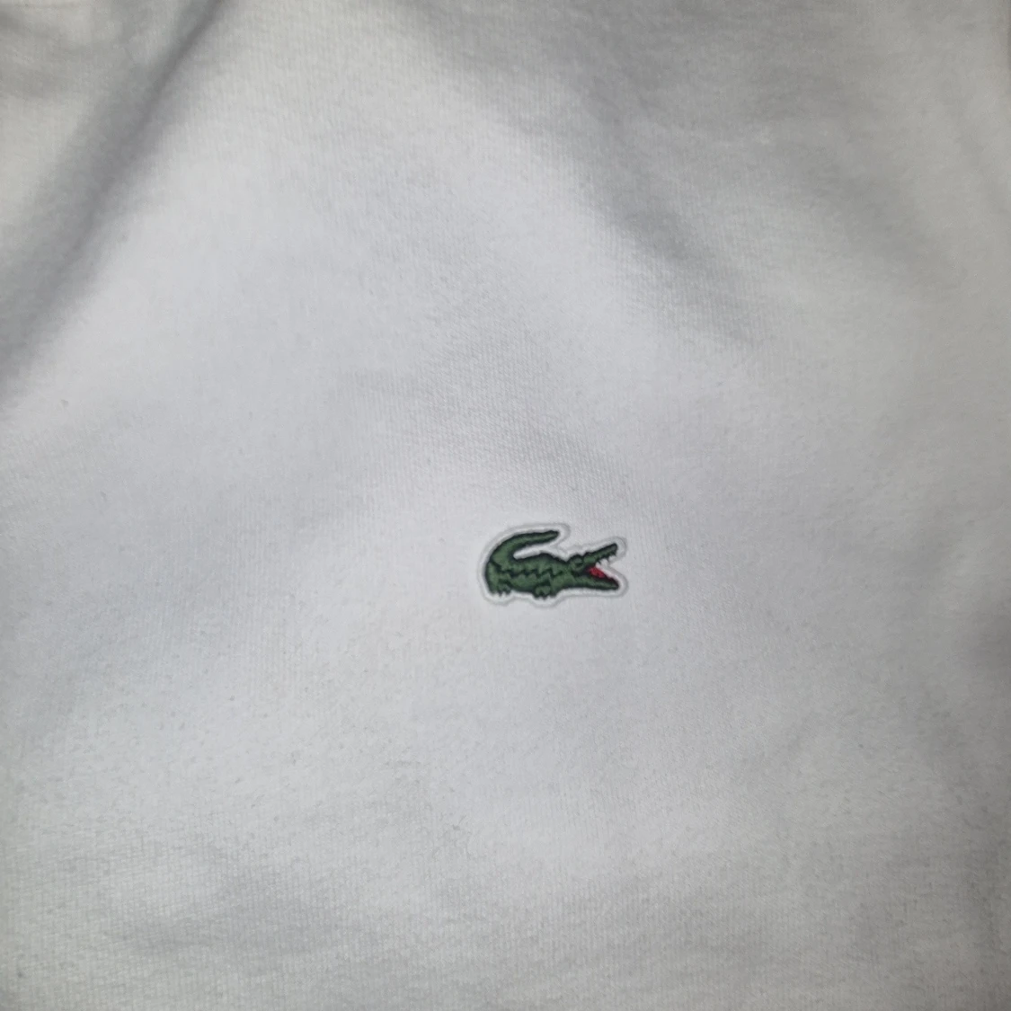 Vit sweatshirt från Lacoste med klassisk rund hals och broderad krokodil-logga på bröstet. Tröjan har lång ärm, ribbade muddar och är i en skön bomullsblandning. Perfekt för en clean och stilren look.