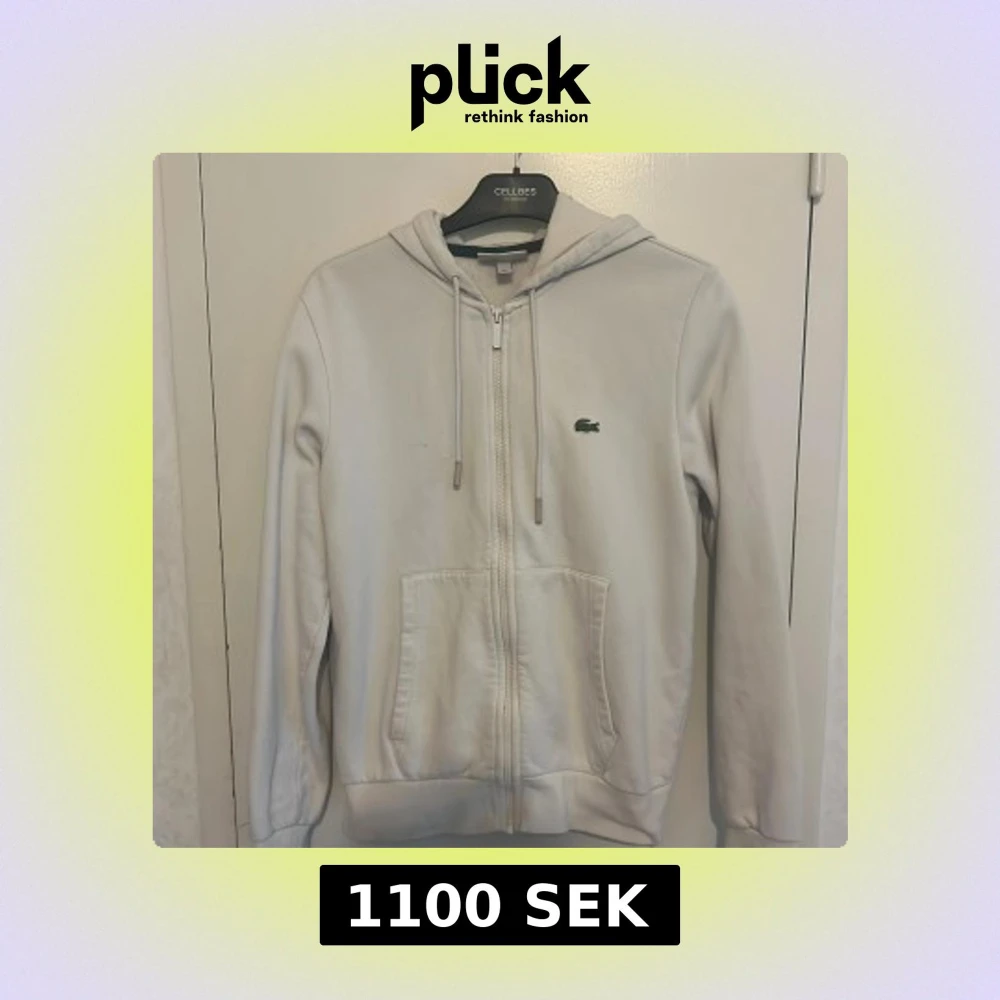 Vit hoodie från Lacoste i klassisk modell med dragkedja framtill och huva med snörning. Tröjan har två fickor fram och den ikoniska gröna krokodilloggan på bröstet. Perfekt för chill dagar eller när du vill ha en clean look.