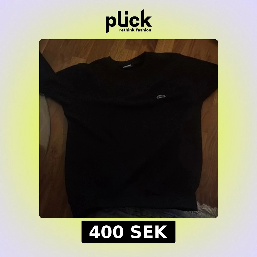 Säljer en svart sweatshirt från Lacoste med klassisk rund hals och den ikoniska krokodilloggan på bröstet. Perfekt för en stilren och enkel look. Tröjan är i mjukt material och passar till många tillfällen.