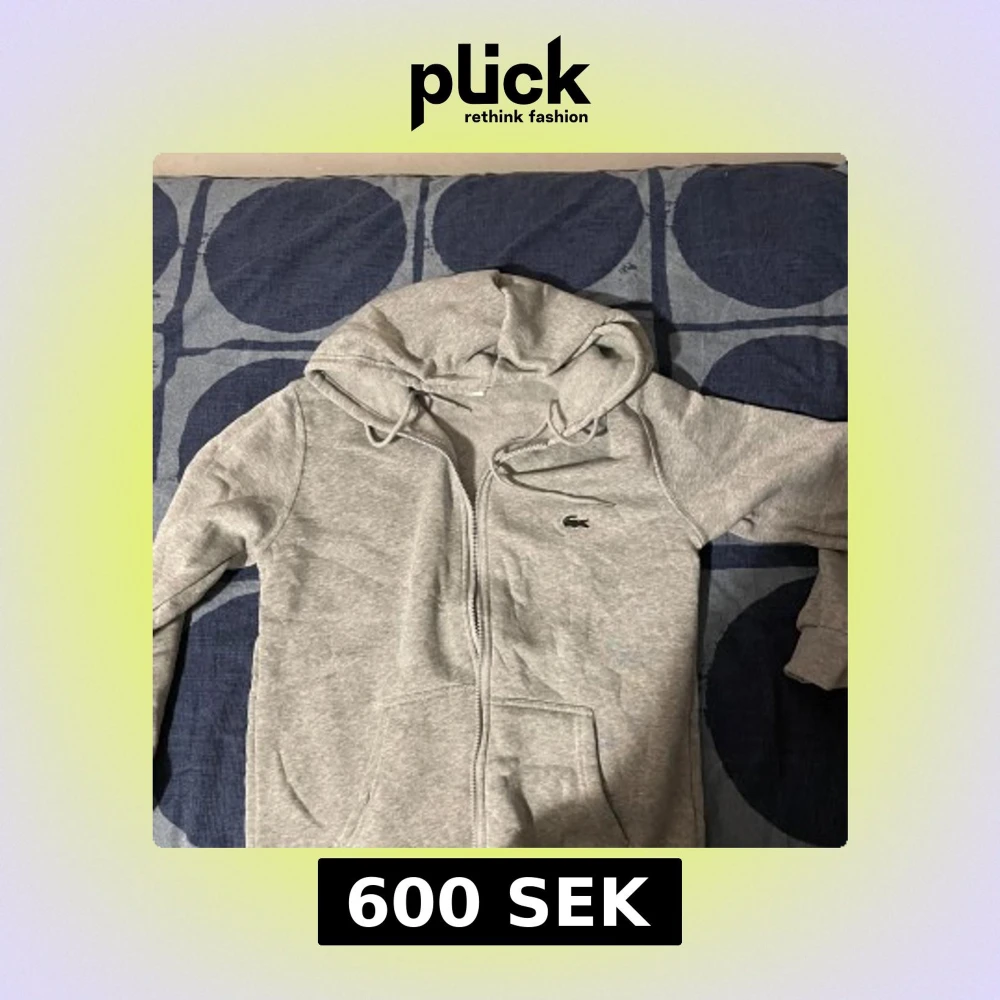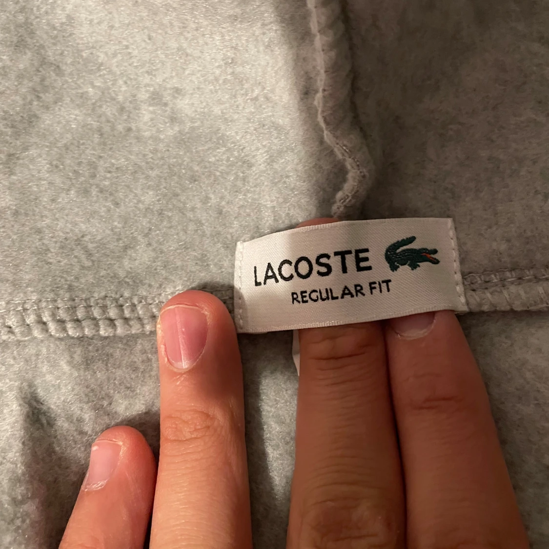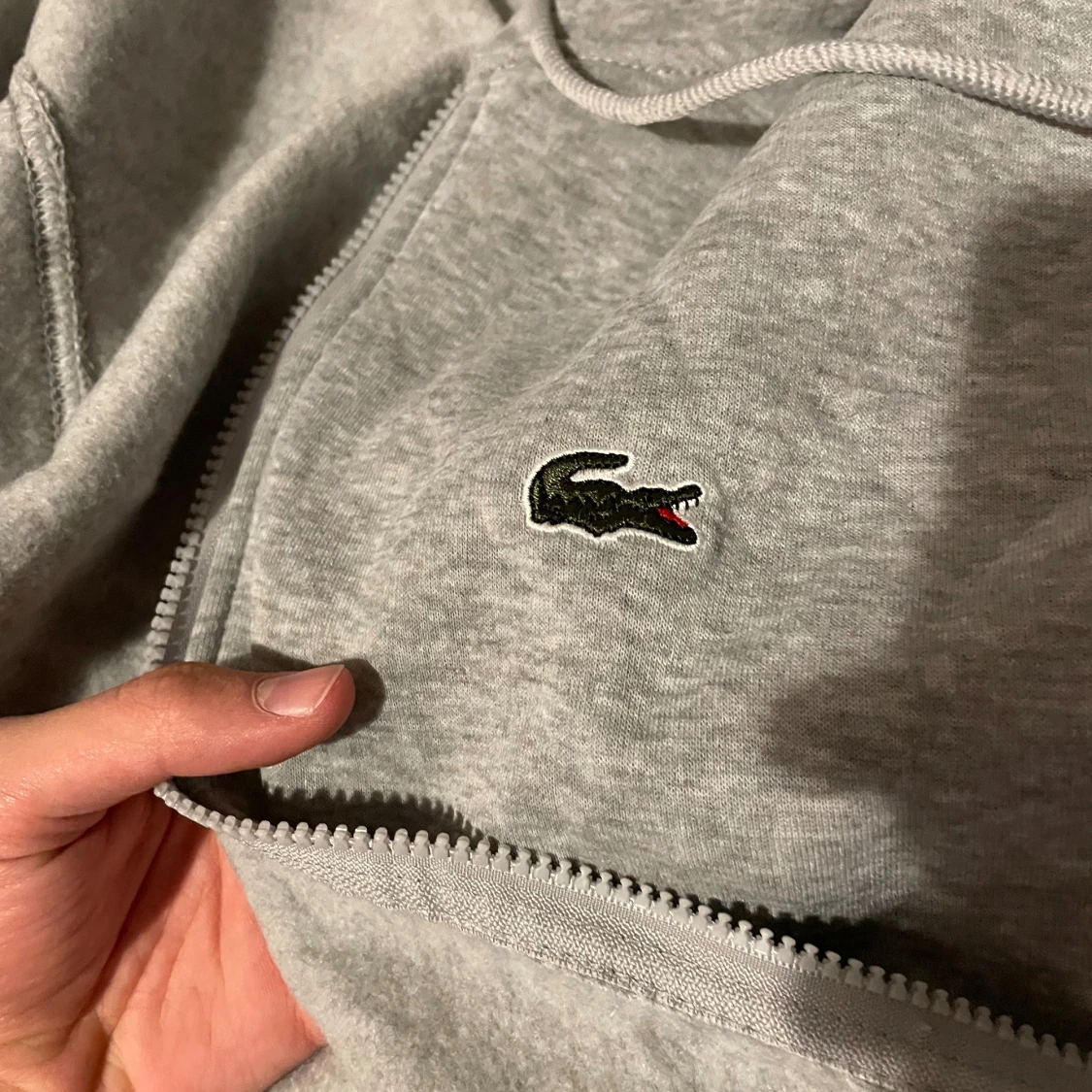 Säljer en grå hoodie från Lacoste i regular fit med klassisk krokodillogga på bröstet. Tröjan har huva med snörning, dragkedja framtill och kängurufickor. Perfekt för chill dagar och enkel att matcha med jeans eller joggers.