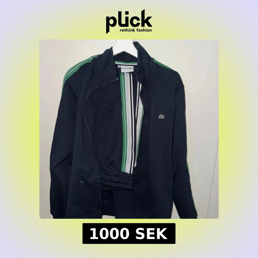 Mörkgrön set, ziptröja och mjukis från Lacoste med gröna ränder