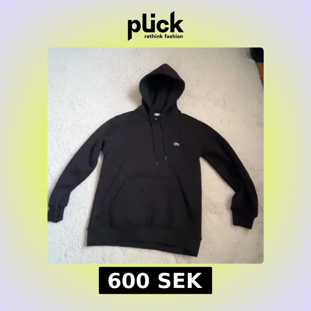 Svart hoodie från Lacoste i storlek M med klassisk krokodillogga på bröstet. Tröjan har huva med snörning, stor magficka och långa ärmar. Materialet är mjuk bomull med stretch för extra komfort. Perfekt för chill dagar och streetwear. Helt ny hoodie, inte använd en ända gång.