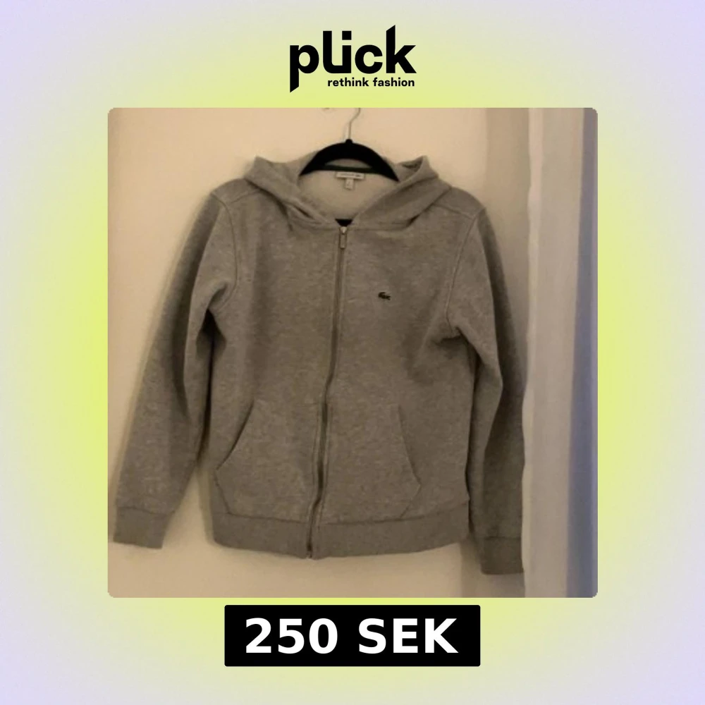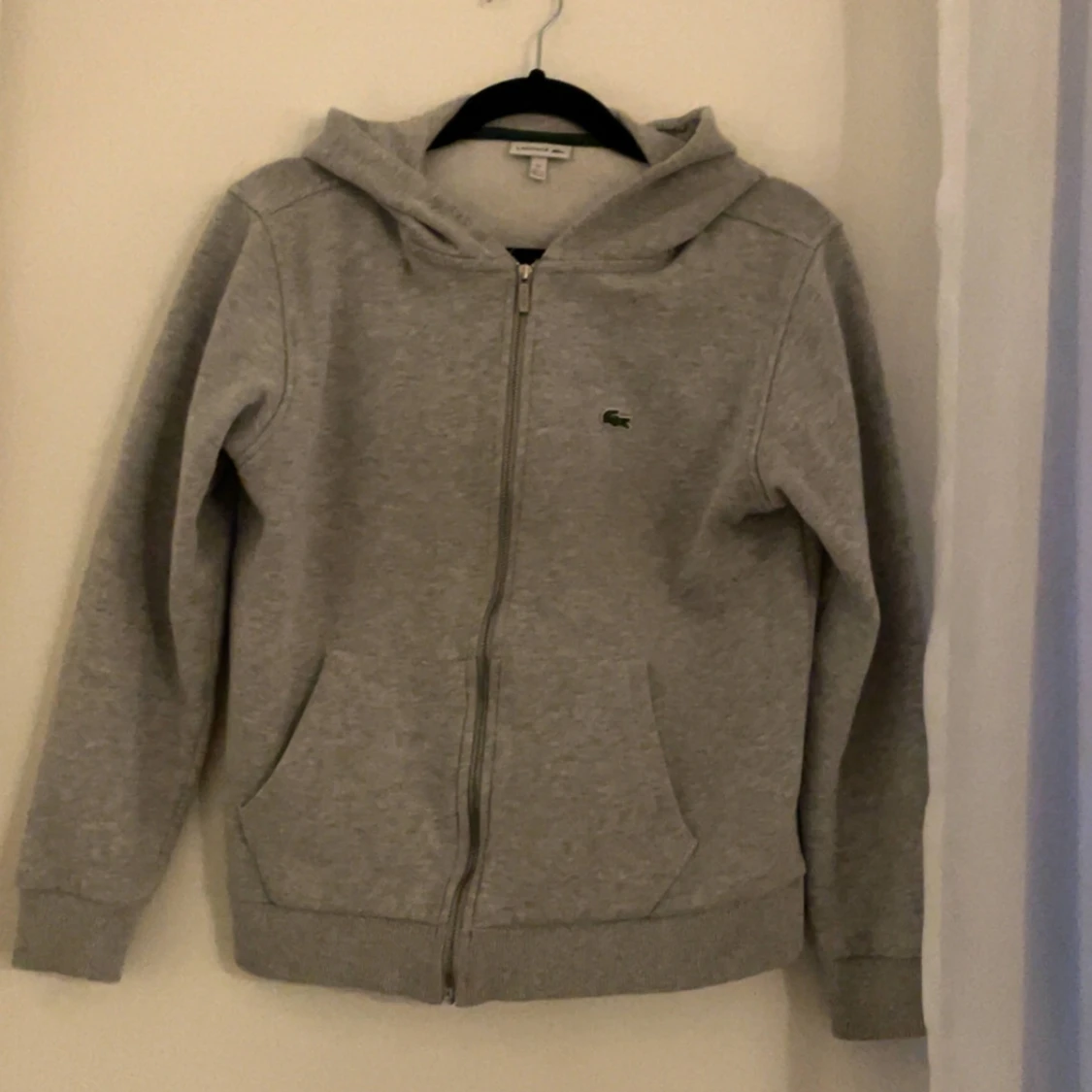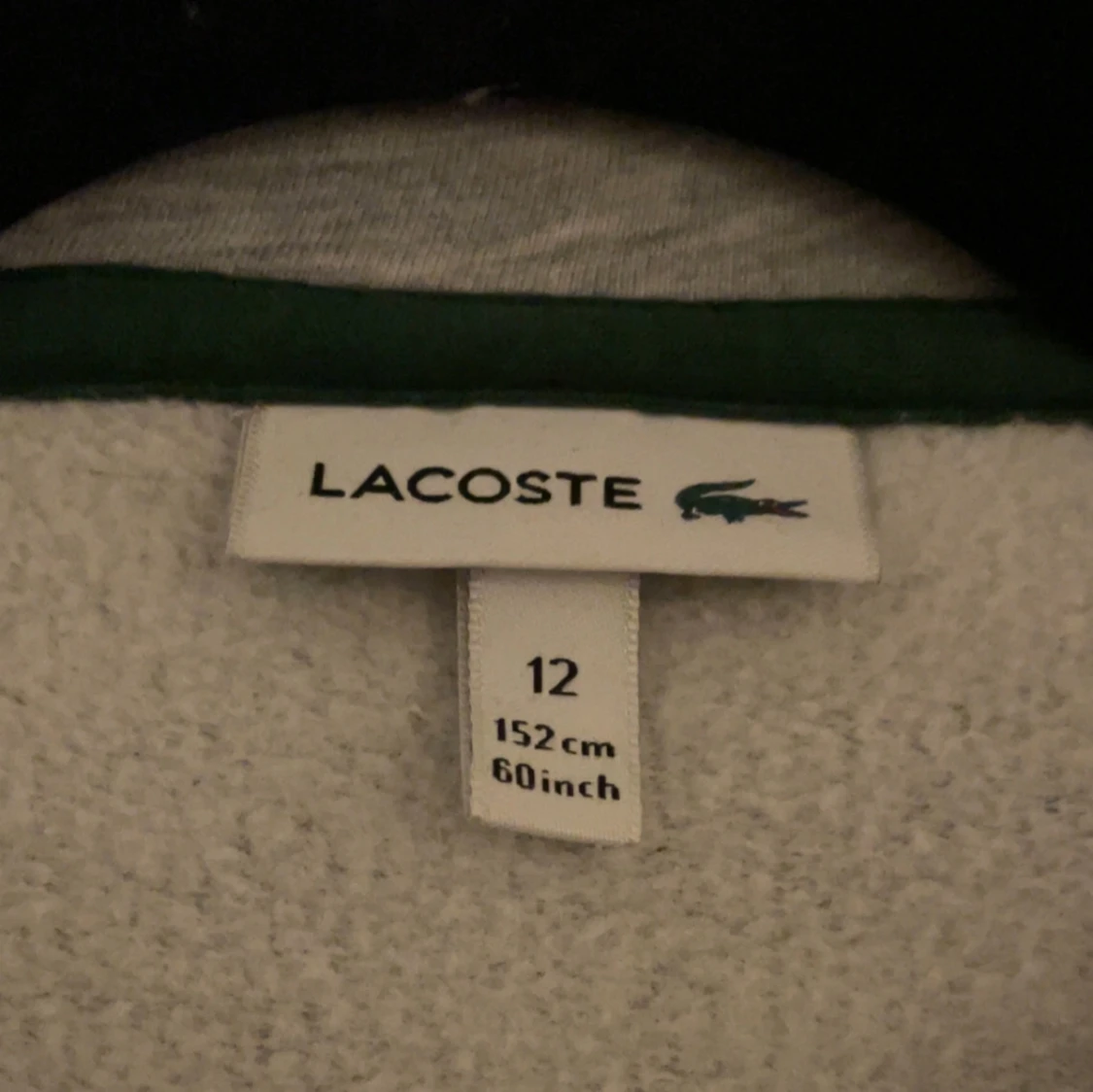 Grå zip hoodie från Lacoste. Bra skick. Storlek 12.