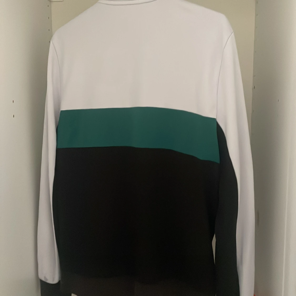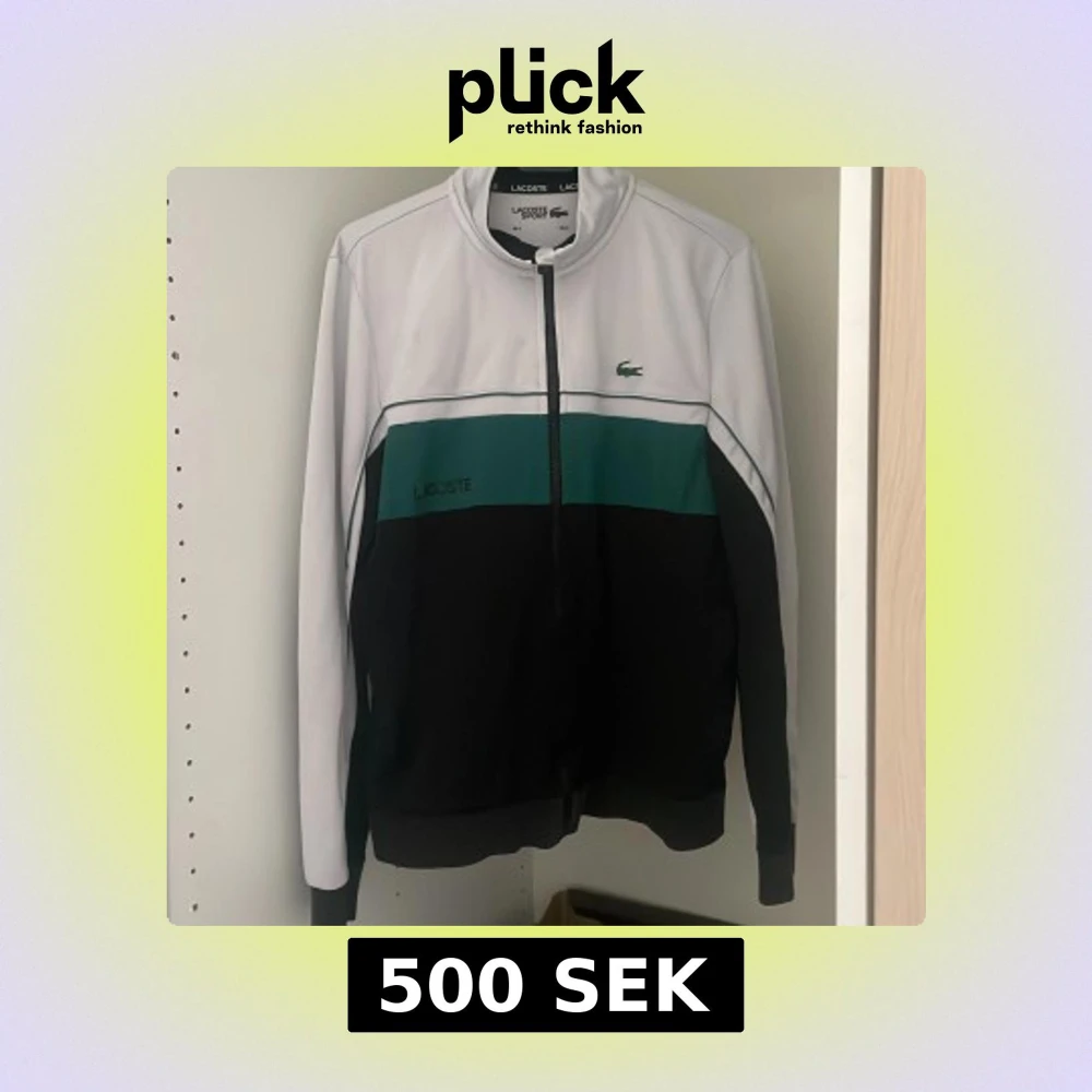 Snygg vindjacka från Lacoste Sport i färgblock med vitt upptill, grönt i mitten och svart nedtill. Klassisk ståkrage, hel dragkedja och broderad Lacoste-logga på bröstet. Perfekt för en sportig och clean look.