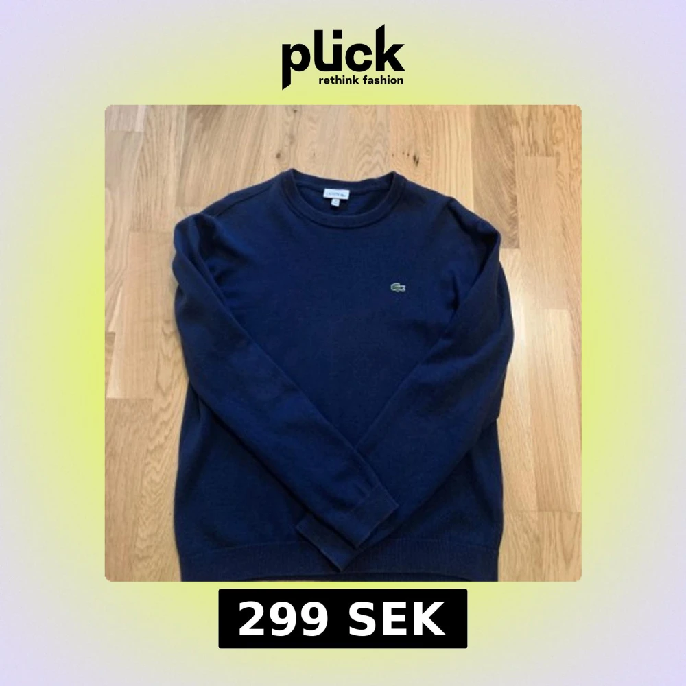 Säljer en klassisk mörkblå tröja från Lacoste med rund hals och den ikoniska gröna krokodilloggan broderad på bröstet. Tröjan har lång ärm och är tillverkad i mjuk bomull, perfekt för en stilren och enkel look. Tröjan är i storlek XS och passar för 160-170.