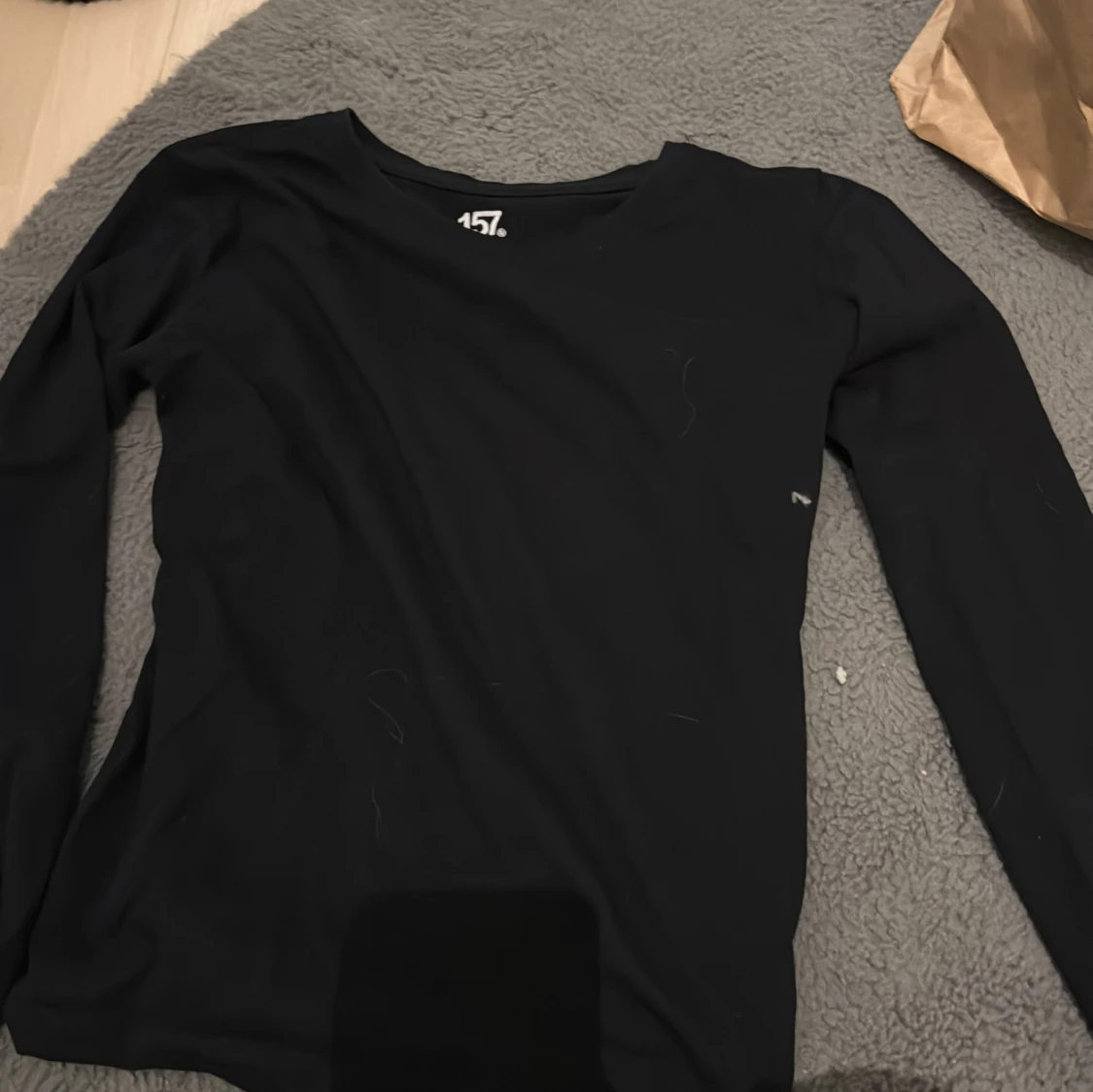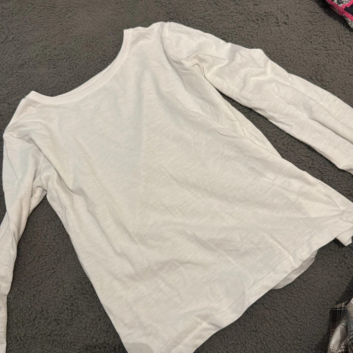 Säljer en stilren vit och svart långärmad topp i mjukt material. Perfekt för lager-på-lager eller att bära som den är. Enkel och tidlös design som passar till det mesta.