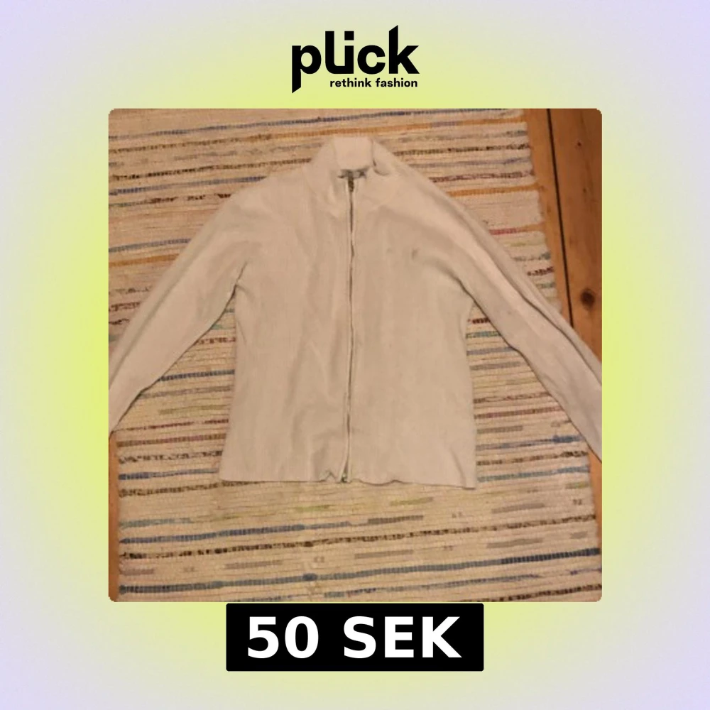 Vit ribbad kofta från 157 med hel dragkedja framtill och ståkrage. Tröjan har långärmad passform och är tillverkad i mjukt, stretchigt material som känns skönt mot huden. Perfekt för dig som gillar stilrena och enkla plagg med lite edge.
