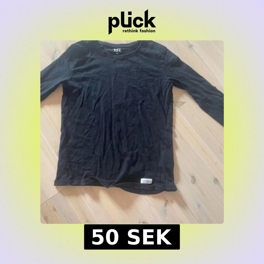 En basic svart långärmad tröja från 157 i mjuk bomull. Enkel och stilren med rund halsringning, perfekt att matcha med jeans eller under en hoodie. Skön passform och passar till alla säsonger. Den är lite kort i ärmarna och därför säljer jag💕