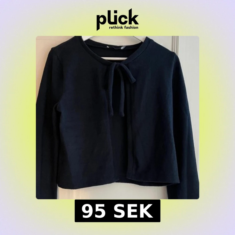 Snygg svart kofta med lång ärm och knytband framtill vid halsen. Enkel och stilren design som funkar till många olika looks. Mjuk och skön kvalitet, perfekt att slänga på sig när det är lite kyligt ute.